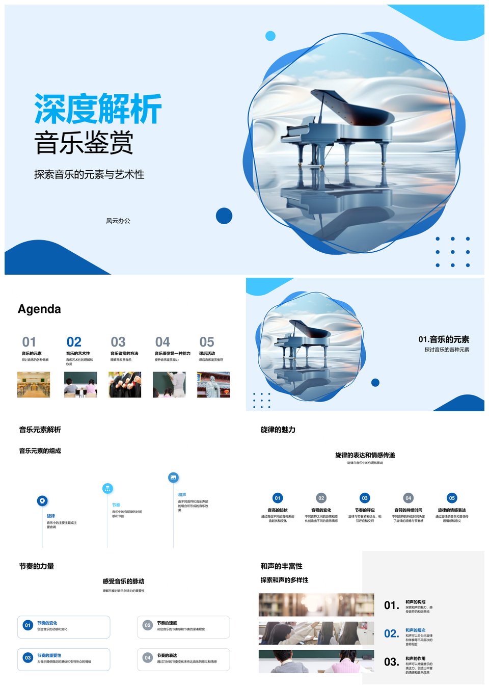 这是一张音乐元素艺术性旋律节奏和声情感传递解析PPT模板,包含音乐元素、艺术性、旋律、节奏、和声、情感传递、解析等主题内容,也可用作音乐元素艺术性旋律节奏、元素艺术性旋律节奏和声、艺术性旋律节奏和声情感传递、旋律节奏和声情感传递解析、音乐元素艺术性旋律、元素艺术性旋律节奏、艺术性旋律节奏和声、旋律节奏和声情感传递、节奏和声情感传递解析、音乐元素艺术性、元素艺术性旋律、艺术性旋律节奏、旋律节奏和声、节奏和声情感传递、和声情感传递解析等PPT场景使用。 风云办公提供的音乐元素艺术性旋律节奏和声情感传递解析PPT模板,下载格式为pptx,一共33页,作品中文字及图均可以修改和编辑,图片更改请在作品中右键图片并更换,文字修改请直接点击文字进行修改。
