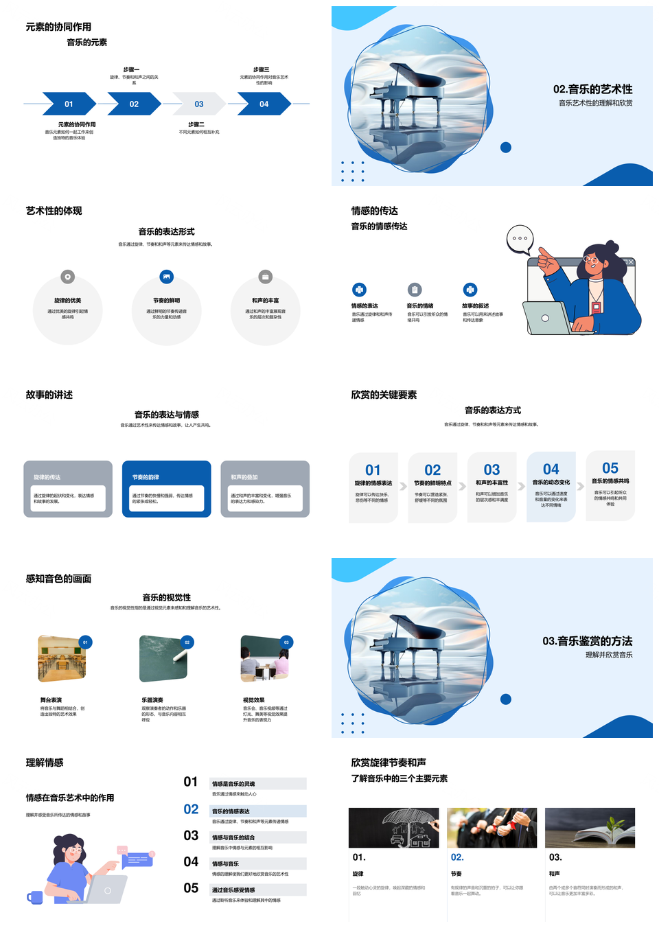 音乐元素艺术性旋律节奏和声情感传递解析PPT模板推荐