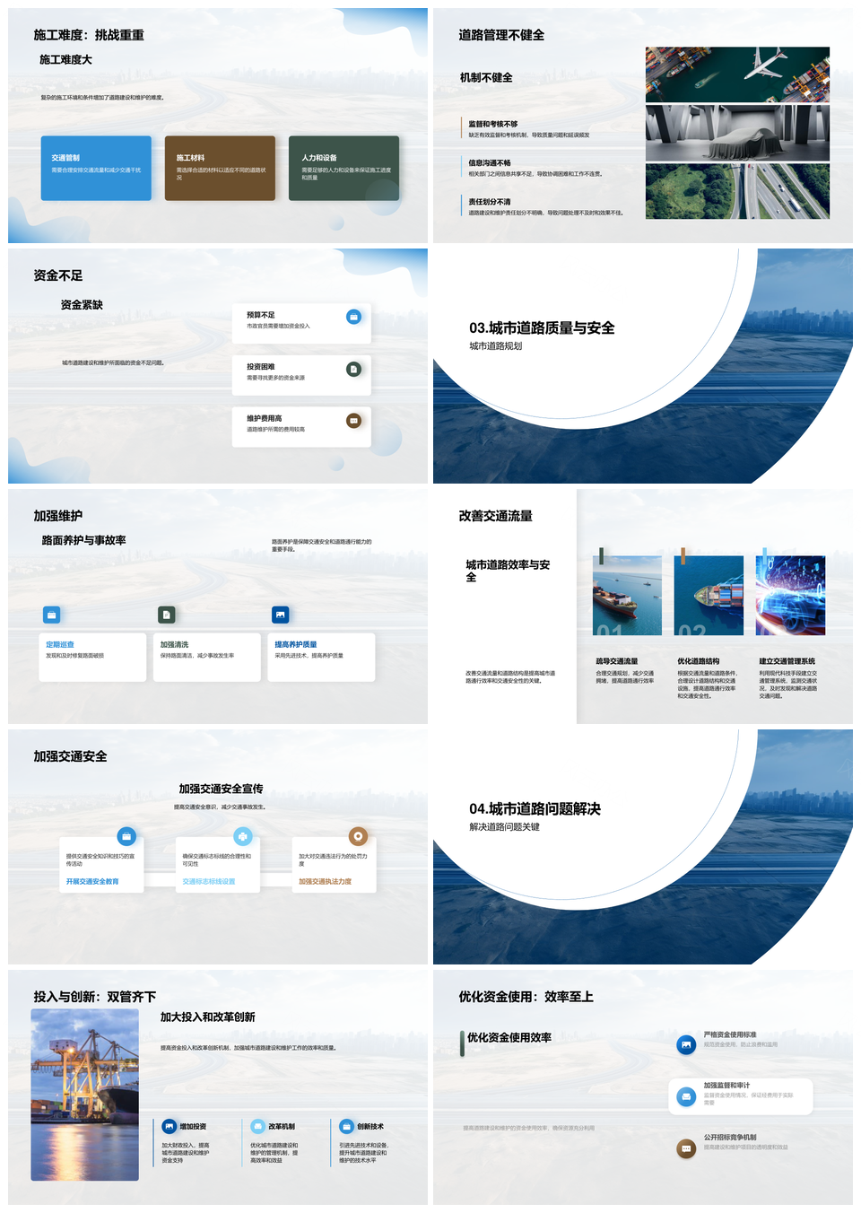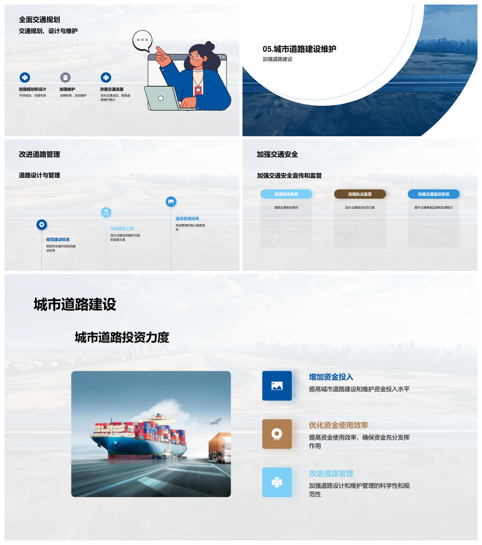 这是一张市政工程师汇报城市道路建设维护关键问题PPT模板,包含市政工程师、汇报、城市道路、建设、维护、关键问题等主题内容,也可用作市政工程师汇报城市道路建设维护关键问题、城市道路建设维护关键问题、市政工程师汇报城市道路建设、工程师汇报城市道路建设、汇报城市道路建设维护、城市道路建设维护关键、道路建设维护关键问题、市政工程师汇报城市道路、工程师汇报城市道路建设维护、道路建设维护关键、市政工程师汇报建设维护、城市道路建设维护、建设维护关键问题、道路建设维护、市政工程师汇报、工程师汇报城市、城市道路建设、建设维护关键、维护关键问题、市政工程师、工程师汇报、城市道路、道路建设、建设维护、维护关键、关键问题等PPT场景使用。 风云办公提供的市政工程师汇报城市道路建设维护关键问题PPT模板,下载格式为pptx,一共23页,作品中文字及图均可以修改和编辑,图片更改请在作品中右键图片并更换,文字修改请直接点击文字进行修改。