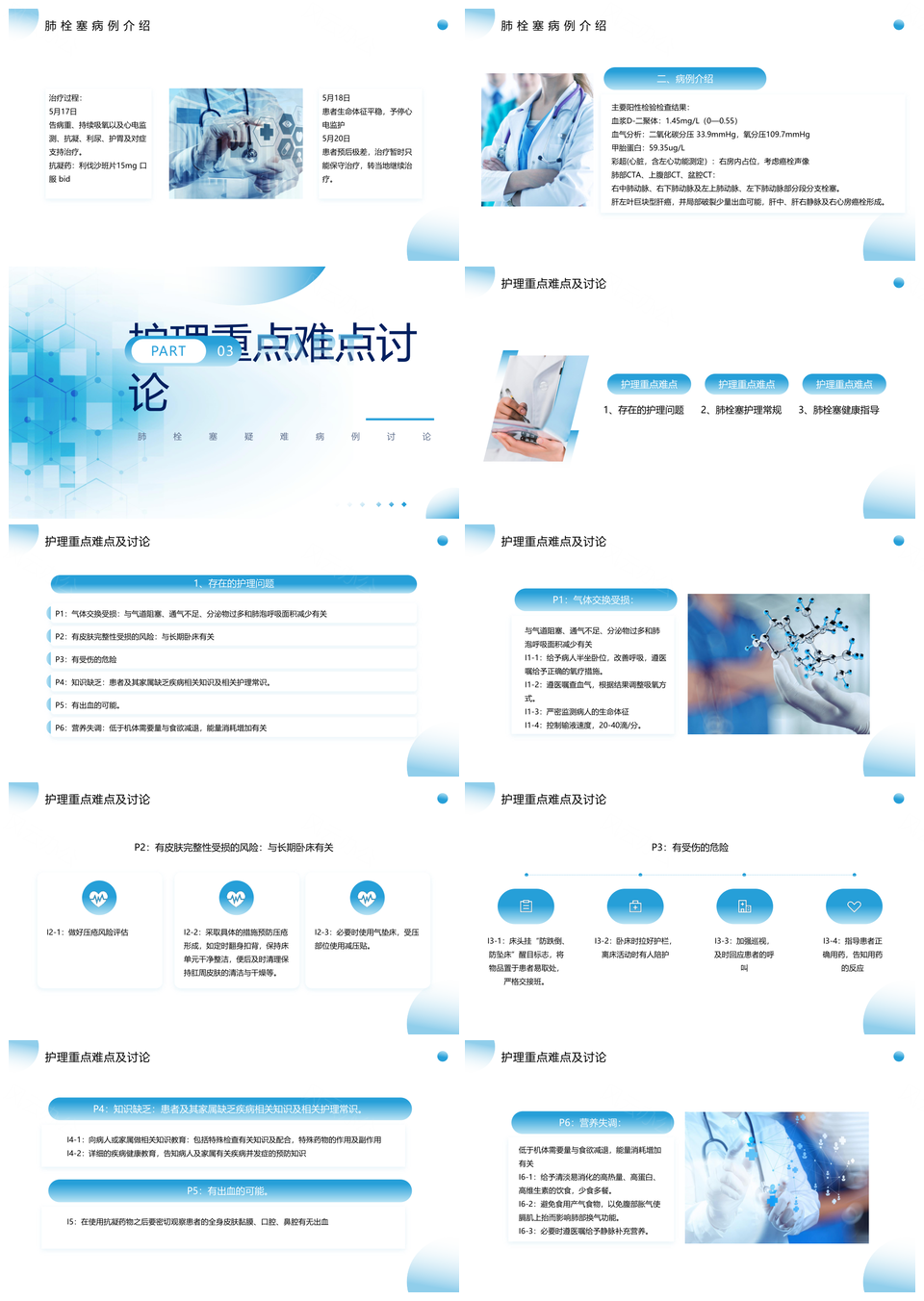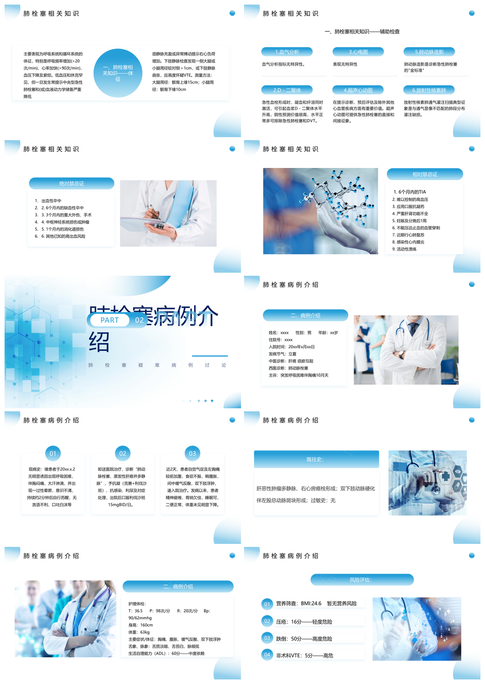 风云办公提供的蓝色简约肺栓塞病例护理查房讨论PPT模板,下载格式为pptx,一共32页,作品中文字及图均可以修改和编辑,图片更改请在作品中右键图片并更换,文字修改请直接点击文字进行修改。