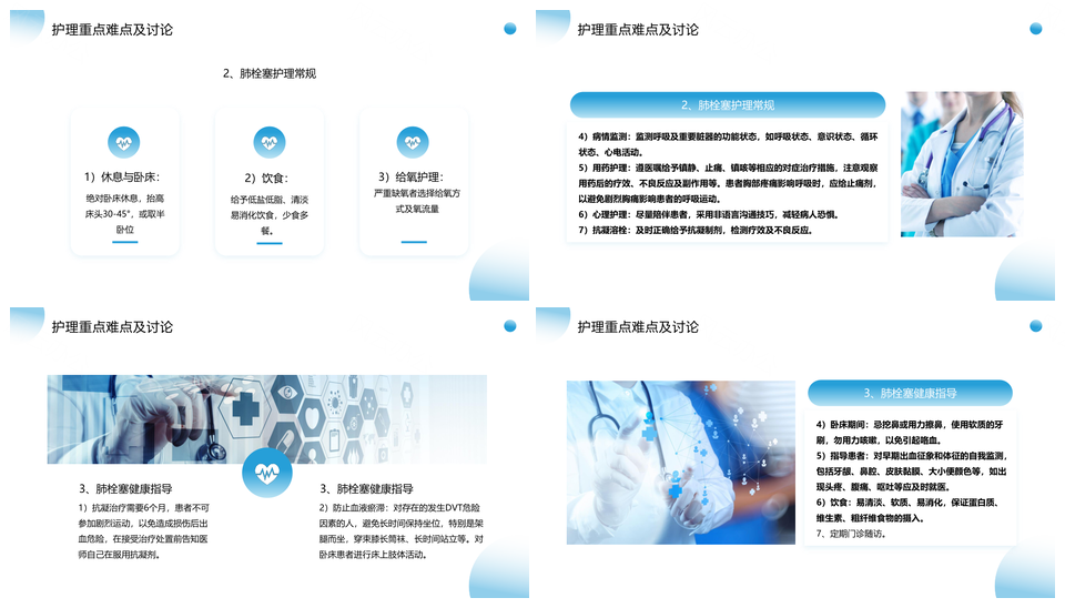 这是一张蓝色简约肺栓塞病例护理查房讨论PPT模板,包含蓝色、简约、肺栓塞、病例、护理、查房、讨论等主题内容,也可用作肺栓塞病例护理查房、蓝色简约肺栓塞病例、简约肺栓塞病例护理、病例护理查房讨论、蓝色简约肺栓塞、简约肺栓塞病例、肺栓塞病例护理、病例护理查房、护理查房讨论、蓝色简约、简约肺栓塞、肺栓塞病例、病例护理、护理查房、查房讨论等PPT场景使用。