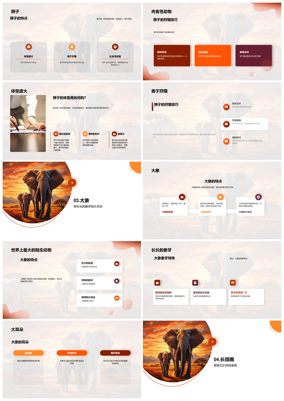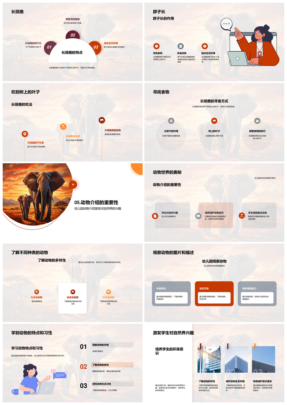这是一张动物园员工带幼儿认识狮象长颈鹿特点习性PPT模板,包含动物园员工、幼儿、狮、象、长颈鹿、特点、习性等主题内容,也可用作动物园员工带幼儿、员工带幼儿认识、带幼儿认识长颈鹿、幼儿认识长颈鹿特点、认识长颈鹿特点习性、员工带幼儿认识、带幼儿认识长颈鹿、认识长颈鹿特点习性、动物园员工带、带幼儿认识长颈鹿、幼儿认识长颈鹿、长颈鹿特点习性、员工带幼儿、幼儿认识特点、认识长颈鹿特点等PPT场景使用。 风云办公提供的动物园员工带幼儿认识狮象长颈鹿特点习性PPT模板,下载格式为pptx,一共36页,作品中文字及图均可以修改和编辑,图片更改请在作品中右键图片并更换,文字修改请直接点击文字进行修改。