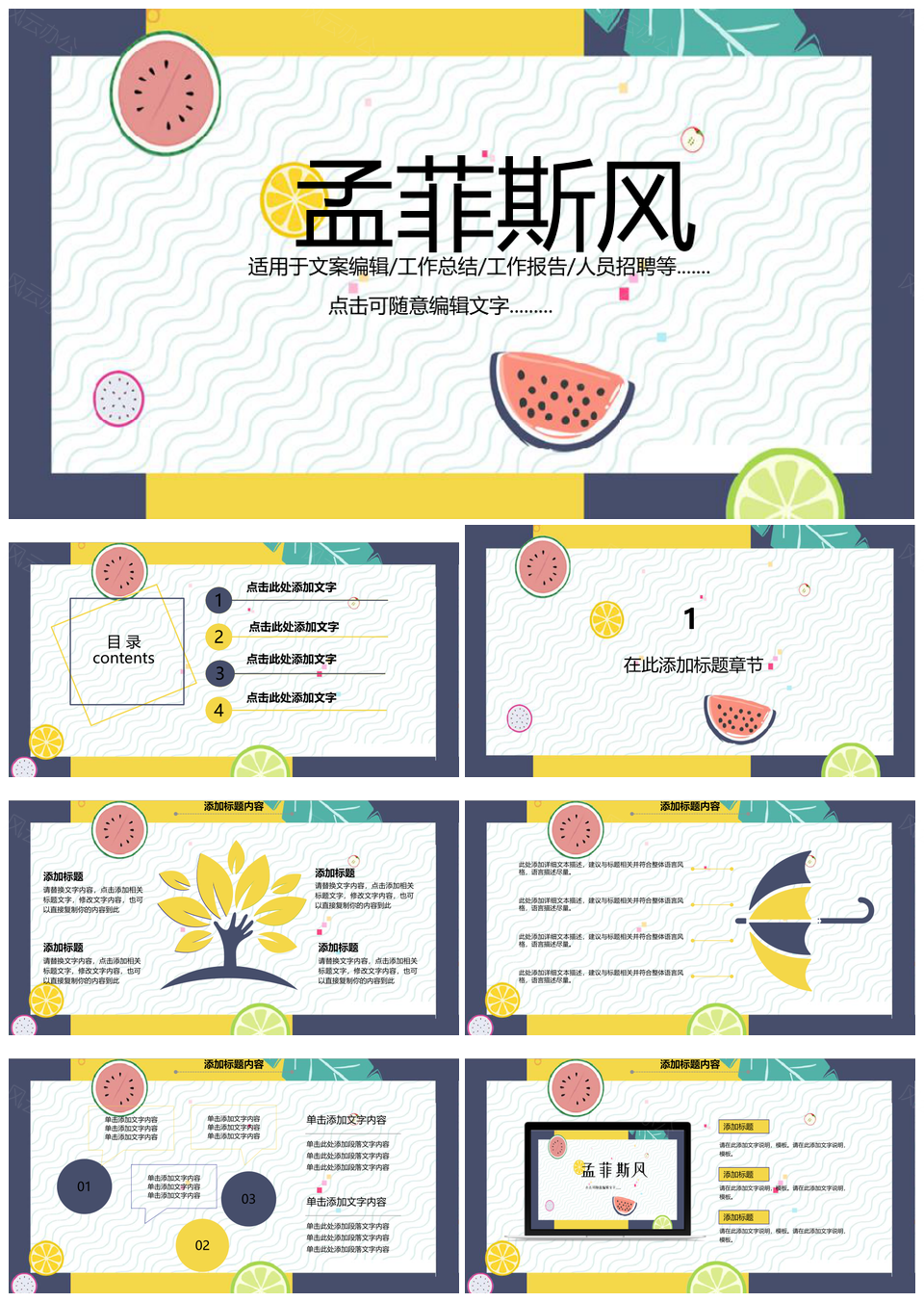 风云办公提供的水果风ins创意拼接撞色水果小清新PPT模板,下载格式为pptx,一共22页,作品中文字及图均可以修改和编辑,图片更改请在作品中右键图片并更换,文字修改请直接点击文字进行修改。