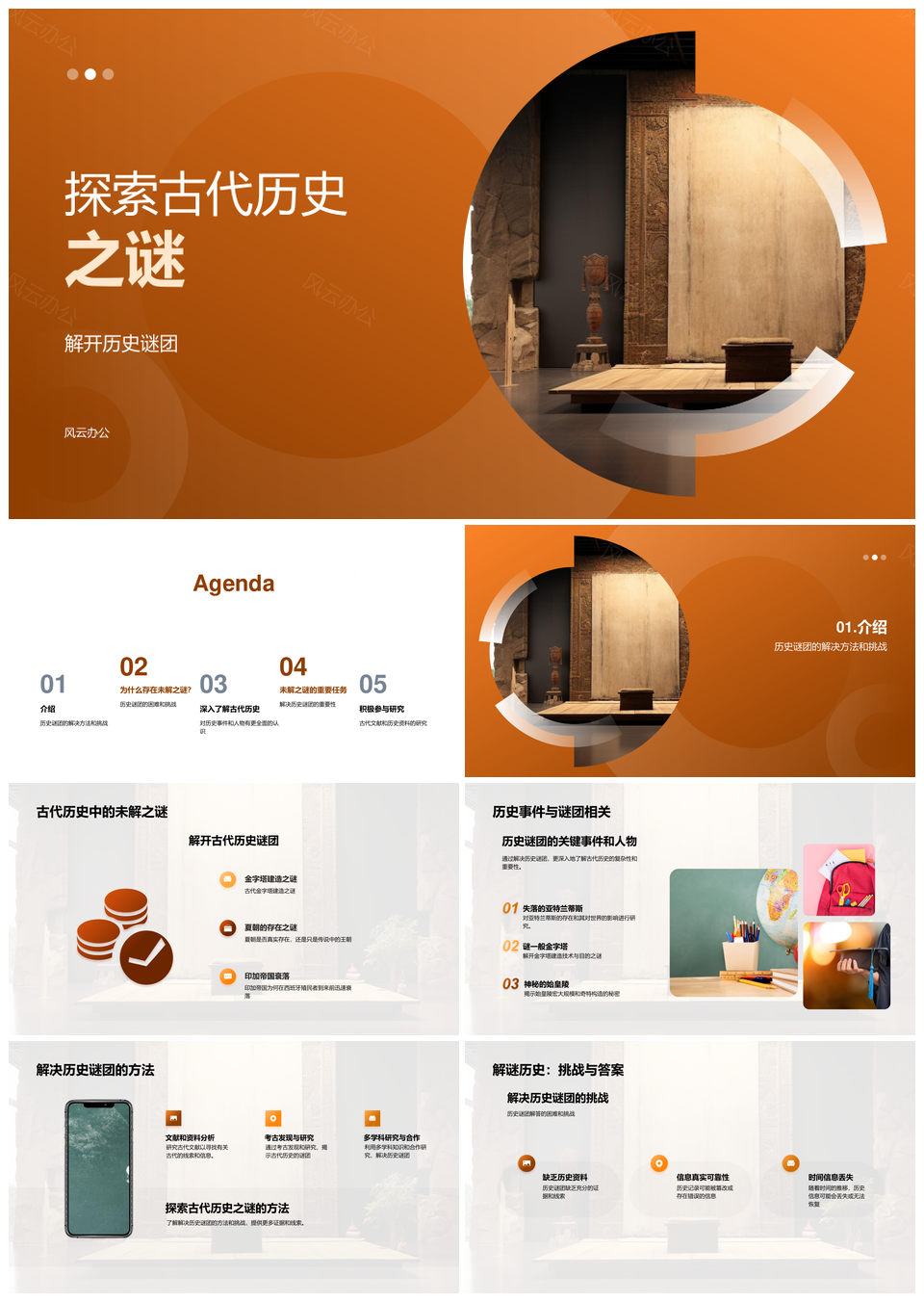 风云办公提供的解密古代历史谜团人物事件文物挑战PPT模板,下载格式为pptx,一共30页,作品中文字及图均可以修改和编辑,图片更改请在作品中右键图片并更换,文字修改请直接点击文字进行修改。