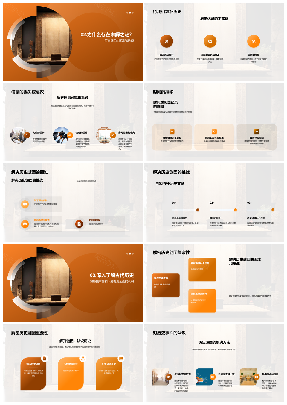 这是一张解密古代历史谜团人物事件文物挑战PPT模板,包含解密、古代历史、谜团、人物、事件、文物、挑战等主题内容,也可用作解密古代历史谜团、古代历史谜团人物、历史谜团人物事件、谜团人物事件文物、人物事件文物挑战、解密古代历史、古代历史谜团、历史谜团人物、谜团人物事件、人物事件文物、事件文物挑战、解密古代、古代历史、历史谜团、谜团人物等PPT场景使用。