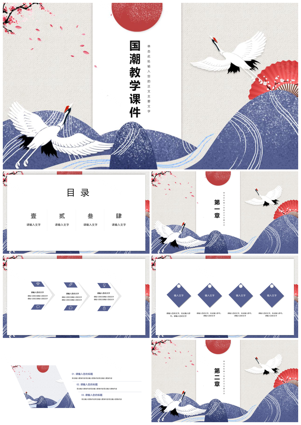 风云办公提供的蓝色国潮来袭中国风教学课件PPT模板,下载格式为pptx,一共11页,作品中文字及图均可以修改和编辑,图片更改请在作品中右键图片并更换,文字修改请直接点击文字进行修改。