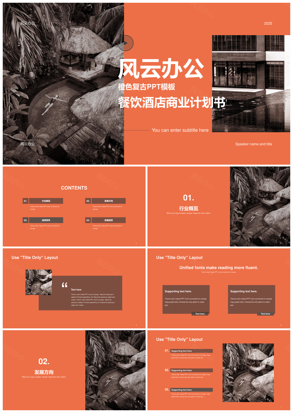 2025橙色复古时尚创意餐饮酒店计划书PPT模板