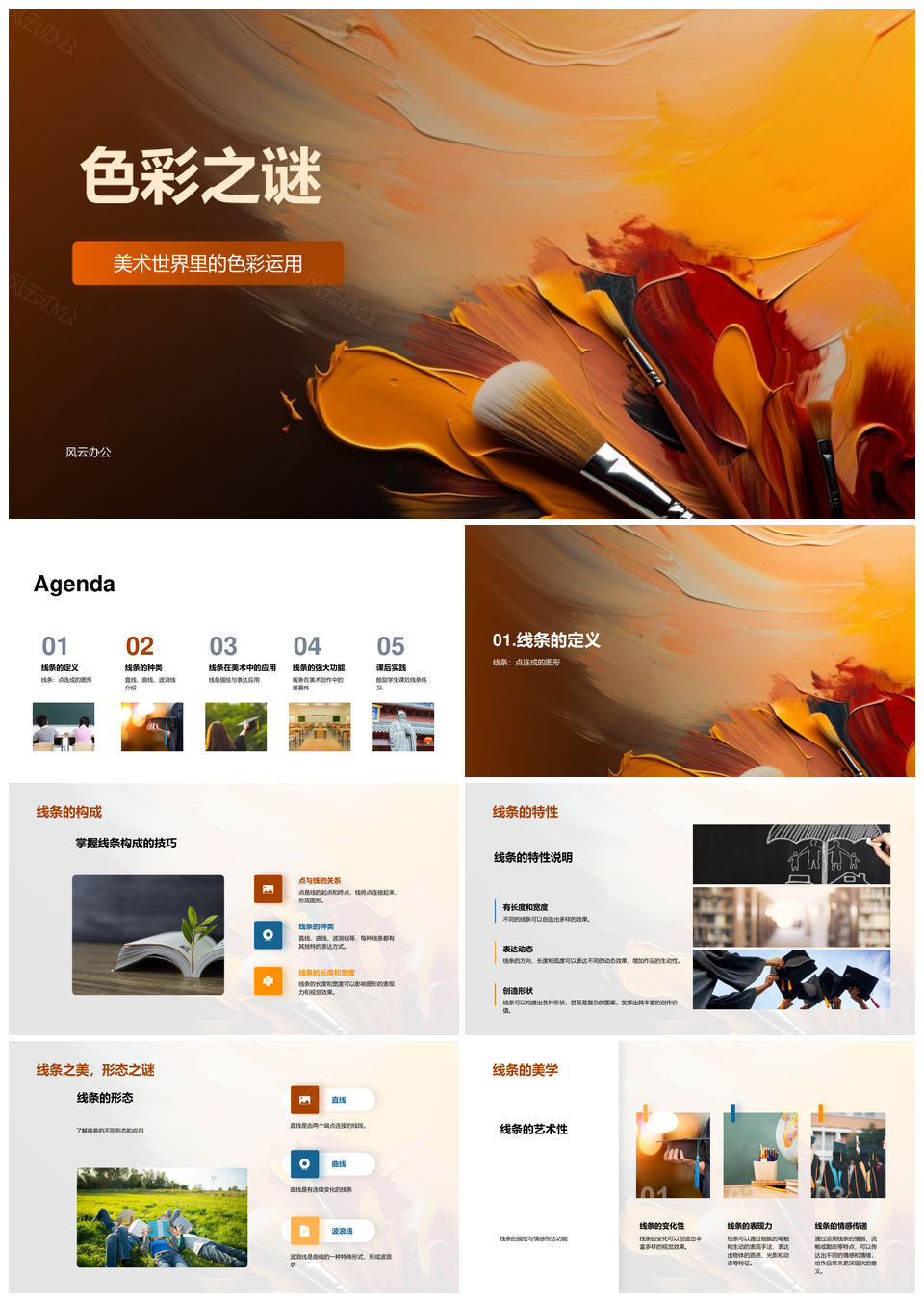 风云办公提供的五年级美术线条与色彩调色之谜PPT模板,下载格式为pptx,一共28页,作品中文字及图均可以修改和编辑,图片更改请在作品中右键图片并更换,文字修改请直接点击文字进行修改。