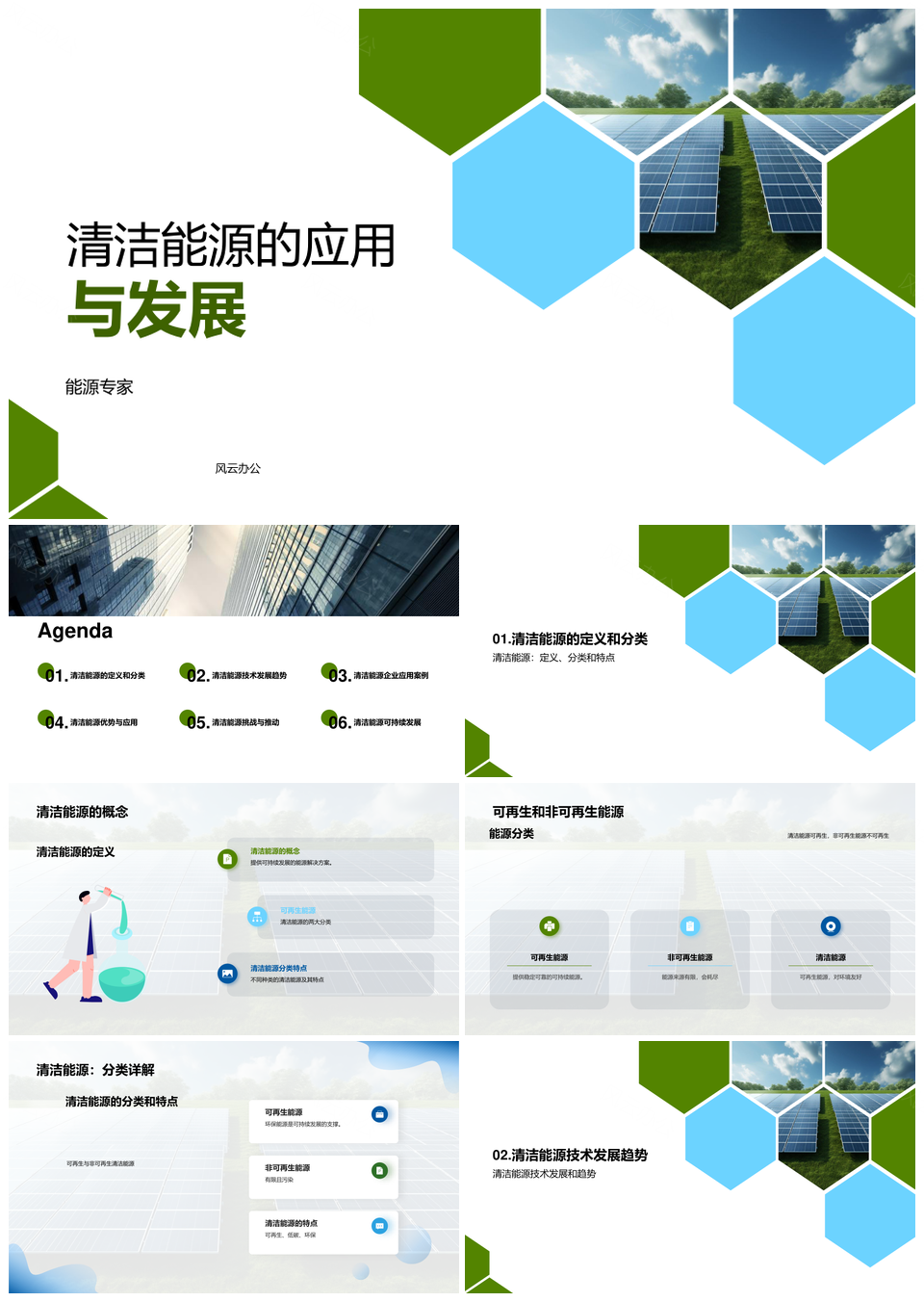 风云办公提供的清洁能源应用发展与太阳能可再生能源PPT模板,下载格式为pptx,一共34页,作品中文字及图均可以修改和编辑,图片更改请在作品中右键图片并更换,文字修改请直接点击文字进行修改。