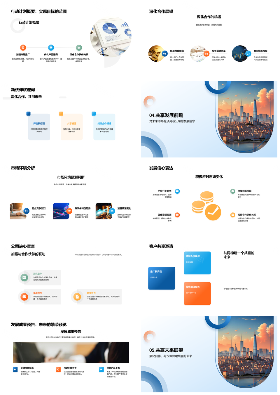 风云办公提供的开拓未来共享成果发展历程与规划PPT模板,下载格式为pptx,一共33页,作品中文字及图均可以修改和编辑,图片更改请在作品中右键图片并更换,文字修改请直接点击文字进行修改。