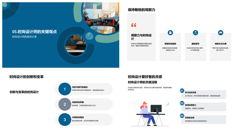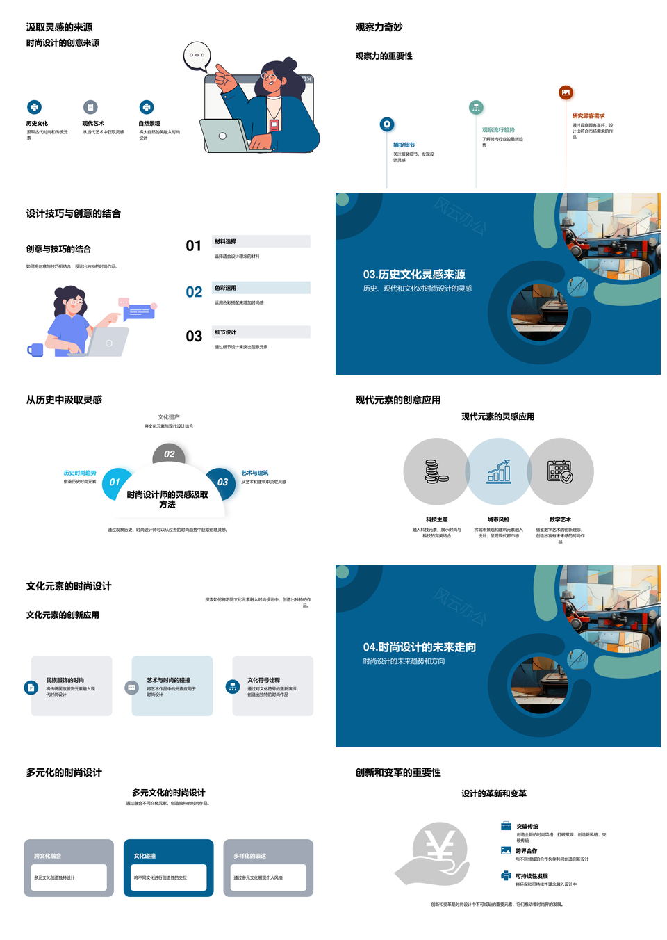这是一张时尚设计融古今文化灵感创意技巧观察素描PPT模板,包含时尚设计、古今文化、灵感、创意、技巧、观察、素描等主题内容,也可用作时尚设计古今文化灵感创意、古今文化灵感创意技巧、灵感创意技巧观察素描、时尚设计灵感创意技巧、古今文化创意技巧观察、设计灵感创意技巧观察、文化灵感创意技巧观察、创意技巧观察素描、时尚设计古今文化、设计古今文化灵感、古今文化灵感创意、文化灵感创意技巧、灵感创意技巧观察、时尚设计灵感创意、创意技巧观察素描、时尚设计灵感创意、灵感创意技巧观察、古今文化创意技巧、文化灵感创意设计、时尚设计古今文化灵感、灵感创意技巧观察、创意技巧观察素描、设计灵感创意技巧、时尚设计古今文化、古今文化灵感创意、时尚设计、文化灵感、创意技巧、观察素描等PPT场景使用。 风云办公提供的时尚设计融古今文化灵感创意技巧观察素描PPT模板,下载格式为pptx,一共22页,作品中文字及图均可以修改和编辑,图片更改请在作品中右键图片并更换,文字修改请直接点击文字进行修改。