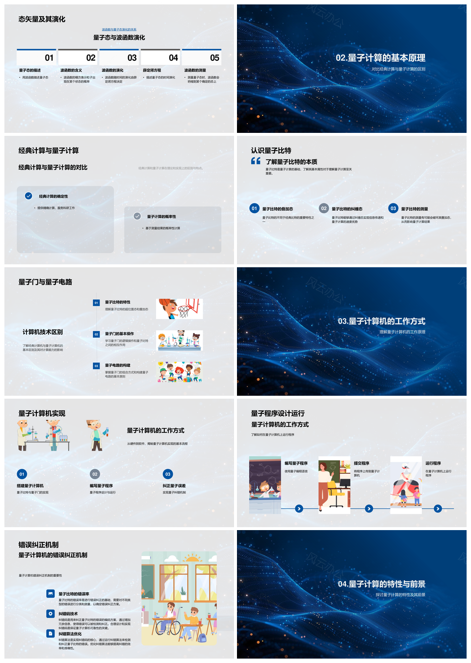 博士讲座量子计算基础比特门电路实现纠错PPT模板推荐