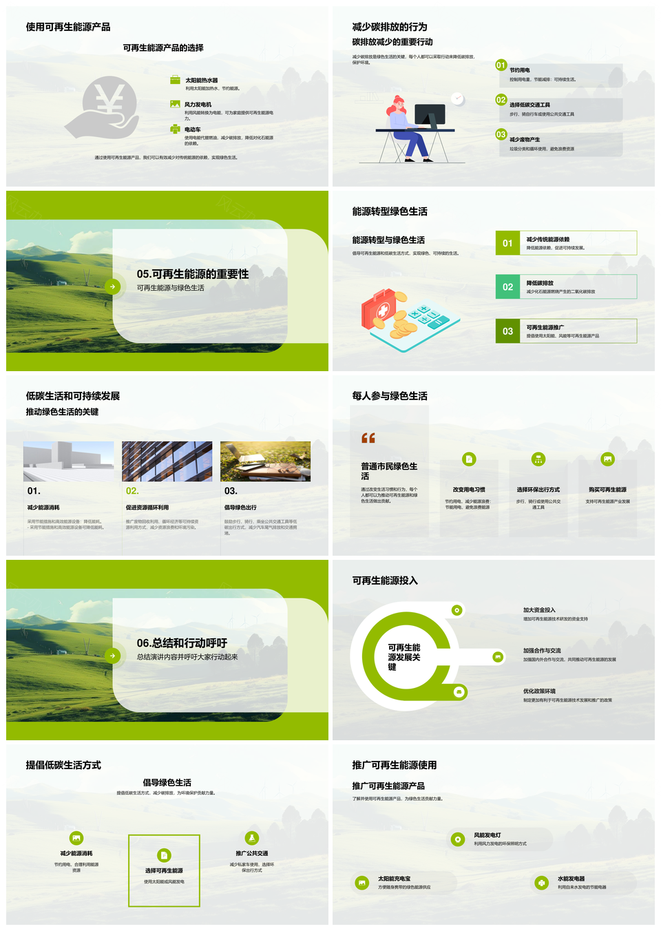这是一张可再生能源现状前景与绿色生活推广PPT模板,包含可再生能源、现状、前景、绿色生活、推广等主题内容,也可用作可再生能源现状前景绿色生活推广、可再生能源现状前景推广、可再生能源绿色生活推广、现状前景绿色生活推广、可再生能源现状前景、可再生能源绿色生活、可再生能源现状推广、可再生能源前景推广、现状前景绿色生活、绿色生活推广现状、可再生能源现状、可再生能源前景、可再生能源推广、现状前景推广、绿色生活推广等PPT场景使用。