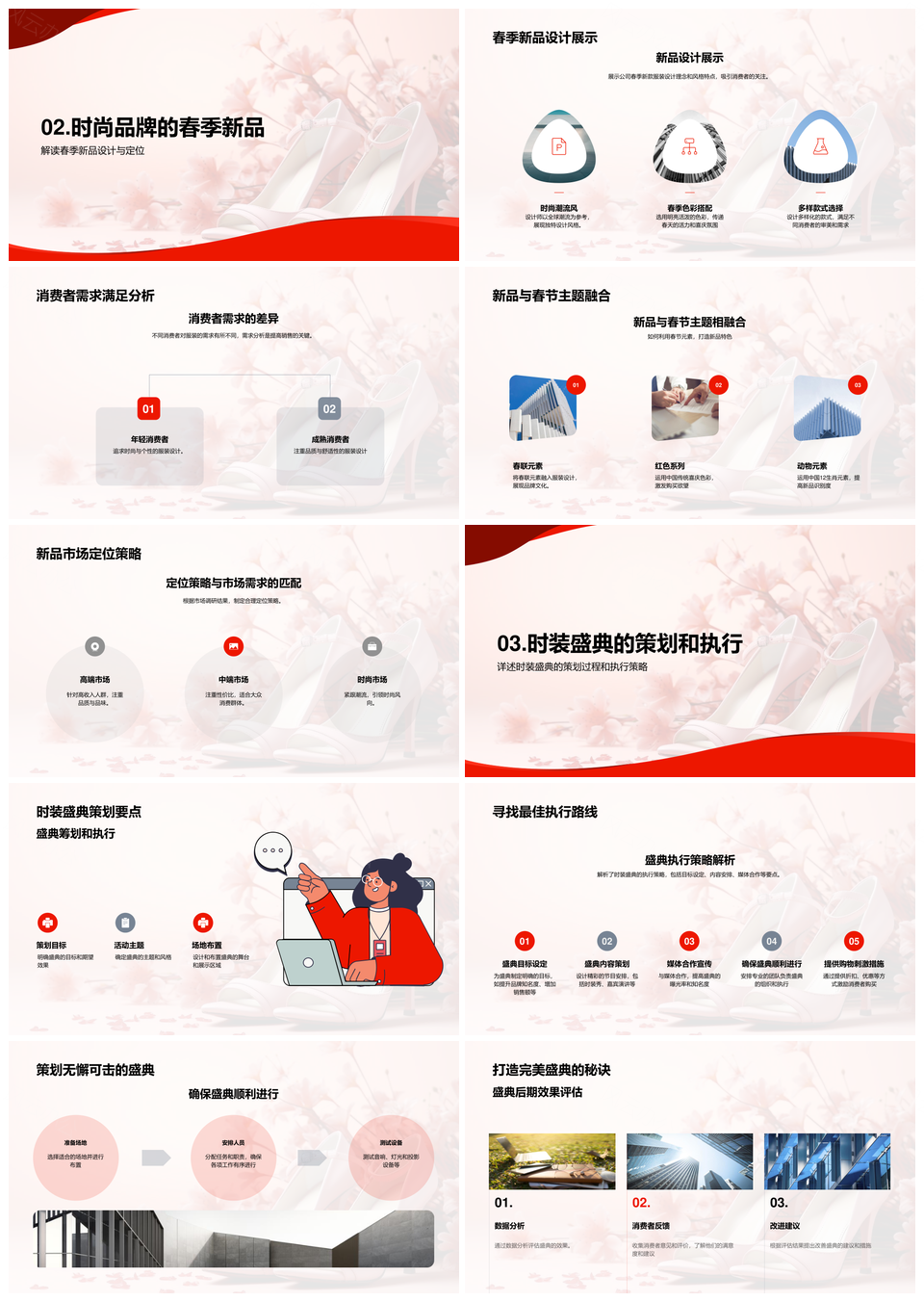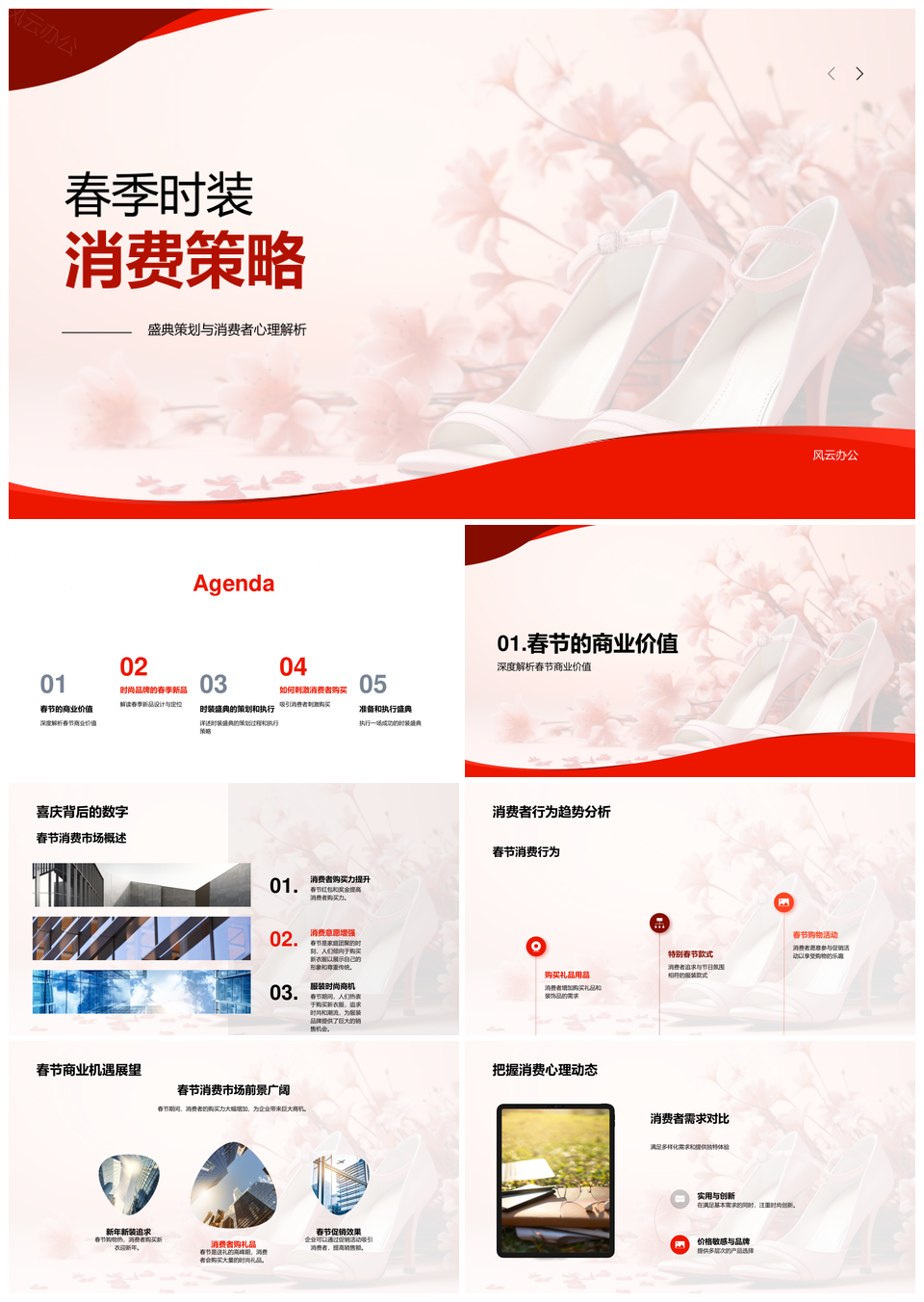 风云办公提供的春季时装盛典策划与春节消费心理策略PPT模板,下载格式为pptx,一共28页,作品中文字及图均可以修改和编辑,图片更改请在作品中右键图片并更换,文字修改请直接点击文字进行修改。