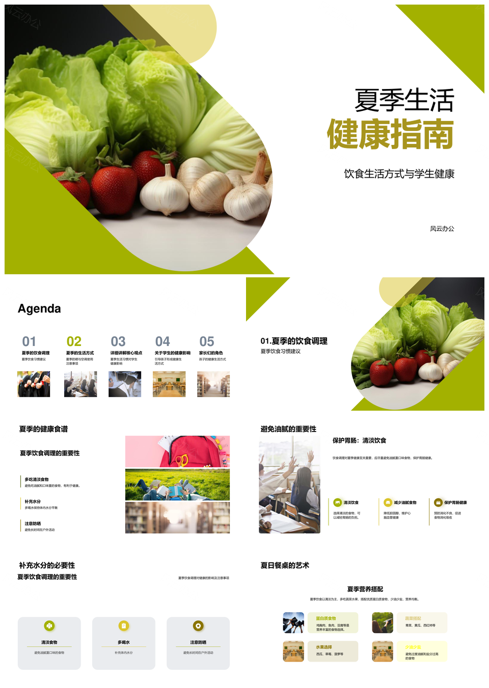 这是一张学生家长夏季健康饮食防晒空调水果指南PPT模板,包含学生家长、夏季、健康饮食、防晒、空调、水果、指南等主题内容,也可用作学生家长夏季健康饮食、家长夏季健康饮食防晒、夏季健康饮食防晒空调、健康饮食防晒空调水果、饮食防晒空调水果指南、学生家长健康饮食防晒、家长夏季饮食防晒空调、夏季防晒空调水果指南、健康饮食水果指南、学生家长防晒空调水果、夏季健康空调水果指南、健康防晒空调水果、饮食空调水果指南、学生家长健康饮食、夏季健康防晒空调等PPT场景使用。 风云办公提供的学生家长夏季健康饮食防晒空调水果指南PPT模板,下载格式为pptx,一共33页,作品中文字及图均可以修改和编辑,图片更改请在作品中右键图片并更换,文字修改请直接点击文字进行修改。