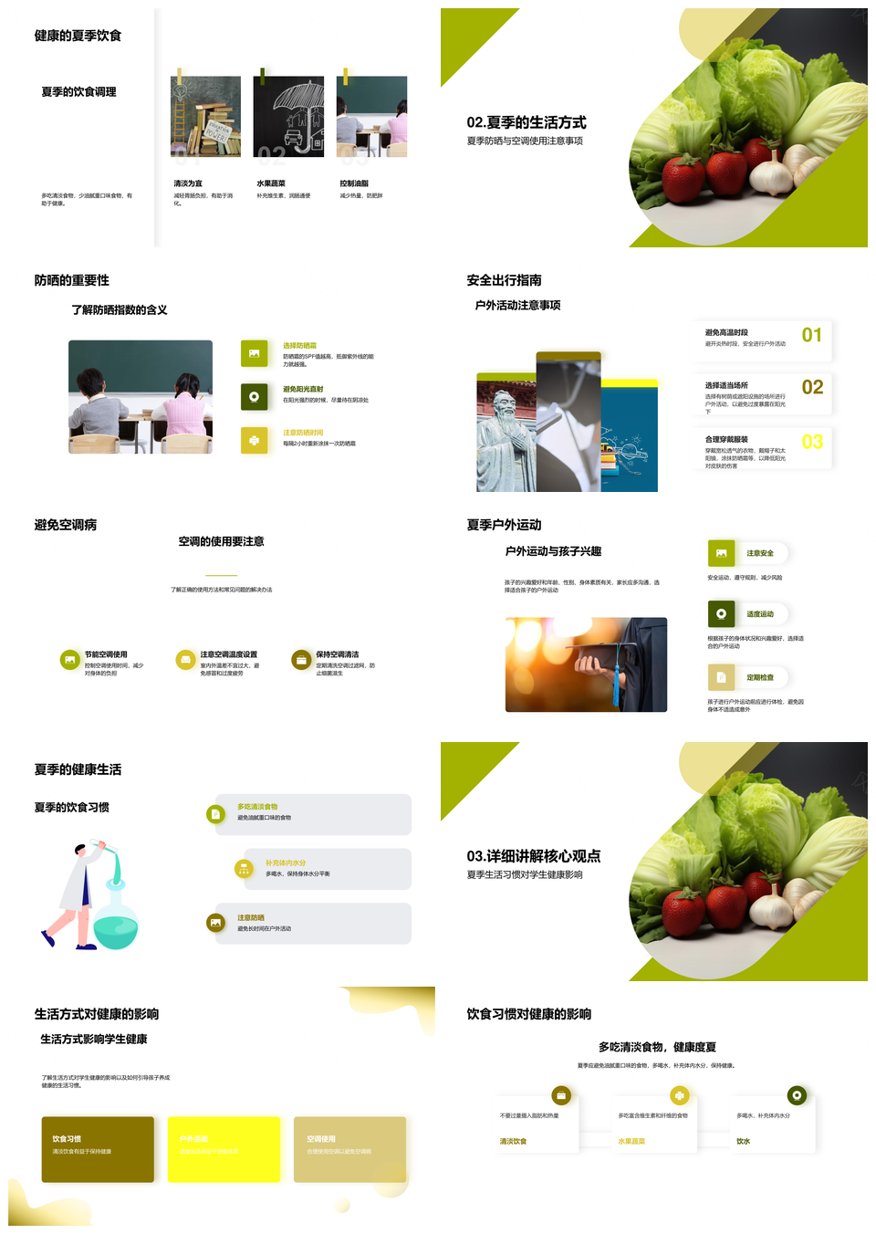学生家长夏季健康饮食防晒空调水果指南PPT模板推荐