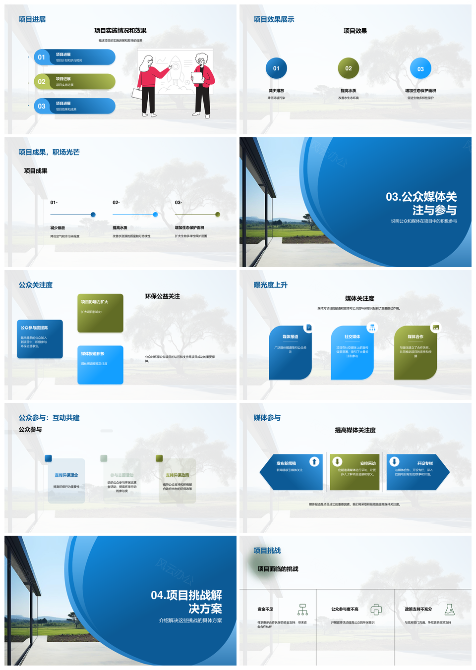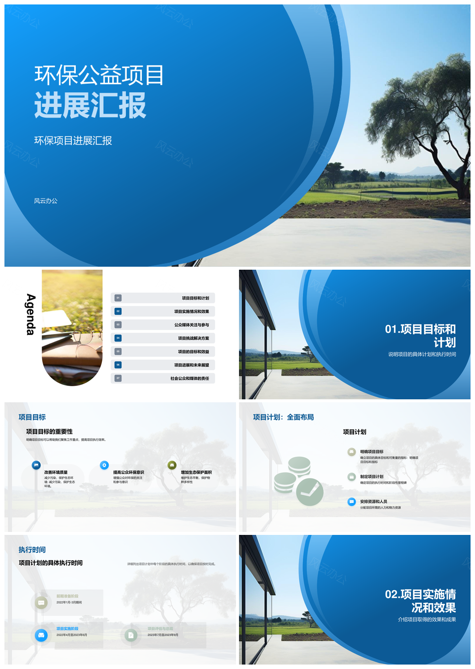风云办公提供的环保公益项目计划实施树成果进展PPT模板,下载格式为pptx,一共35页,作品中文字及图均可以修改和编辑,图片更改请在作品中右键图片并更换,文字修改请直接点击文字进行修改。