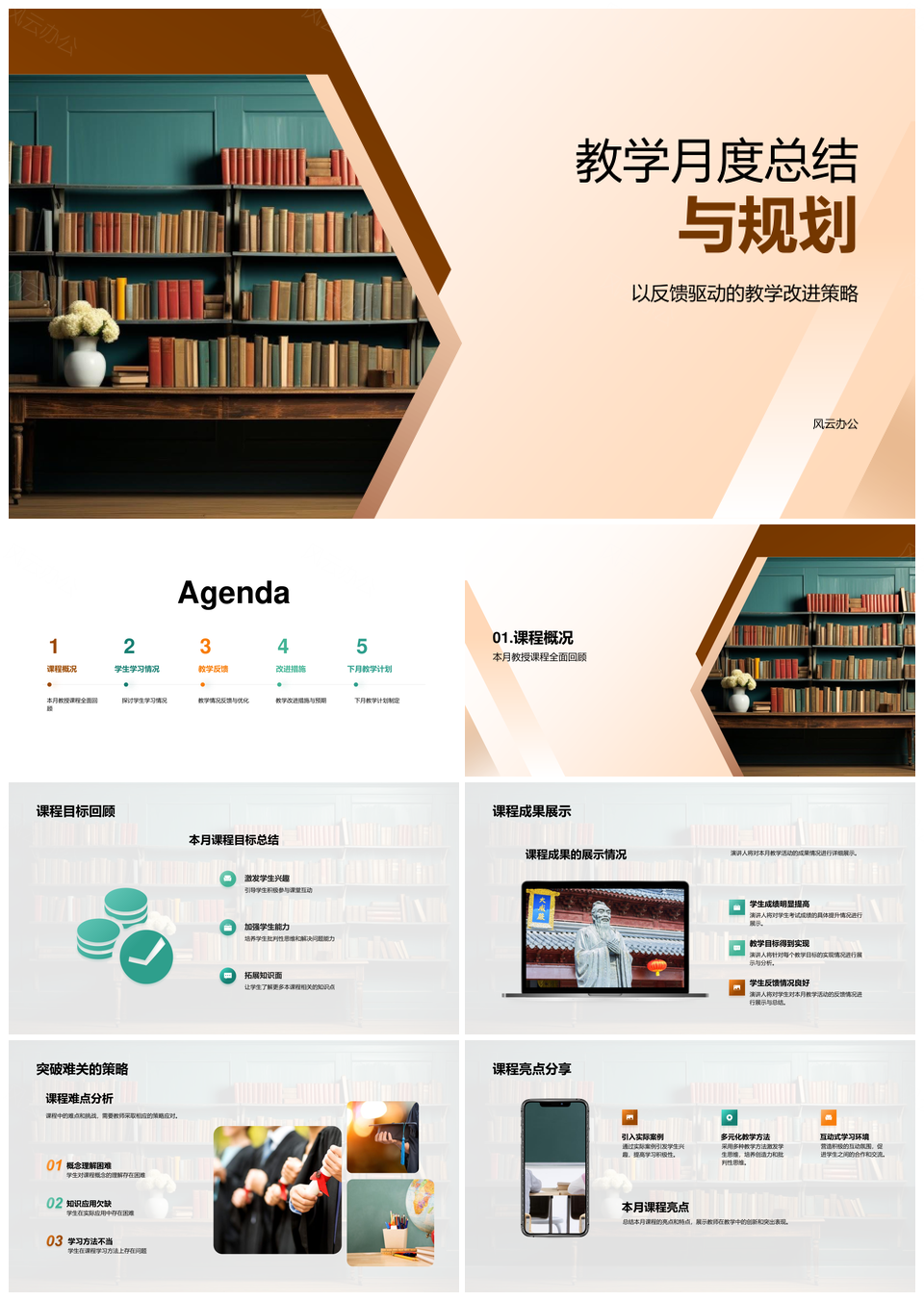 2025教学月度总结计划反馈挑战改进课程互动PPT模板