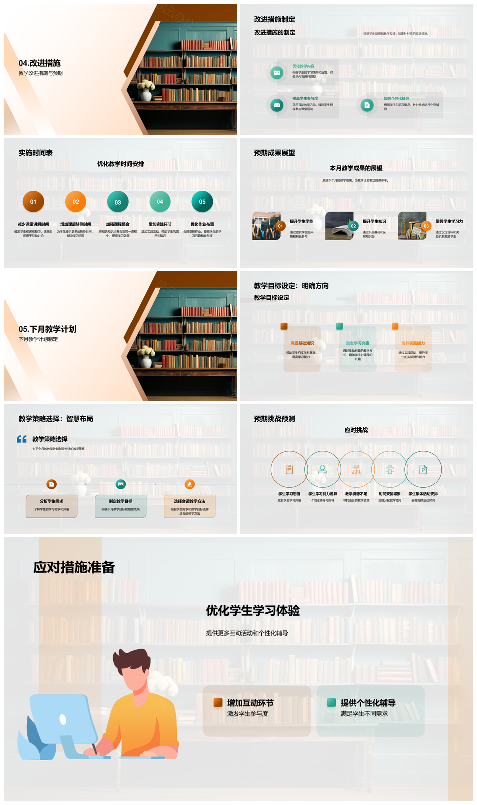 教学月总结规划课程学情效果改进下月目标策略黑板PPT模板推荐