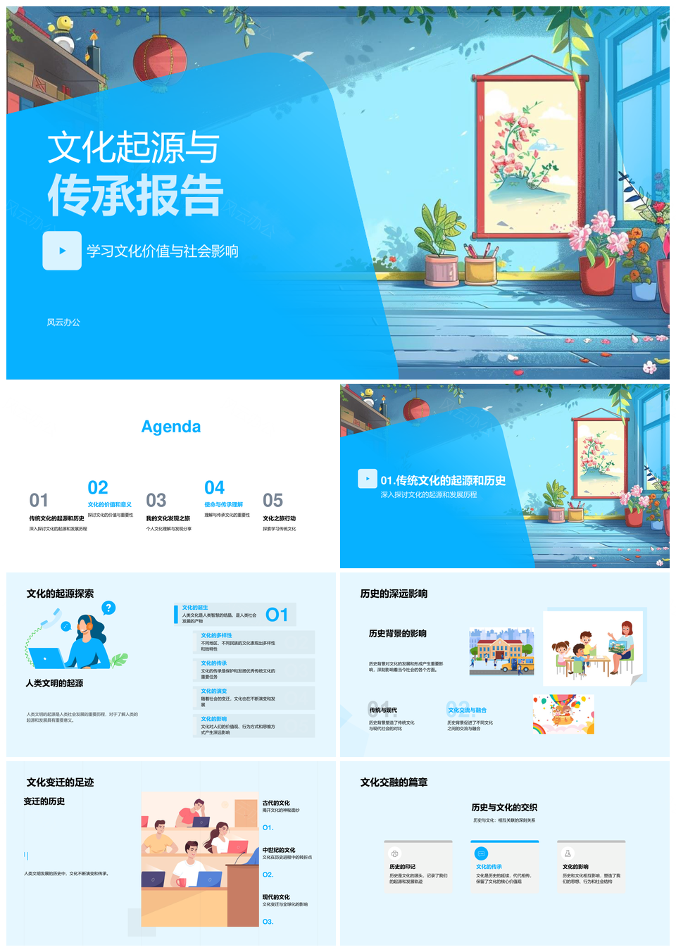 2025文化起源传承发展历程与社会影响PPT模板推荐