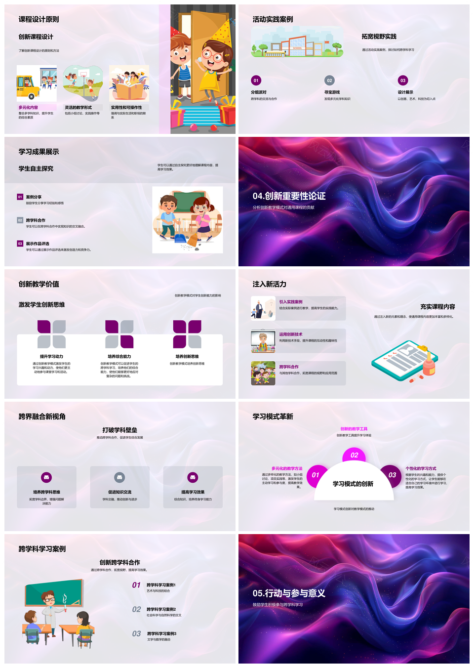 这是一张跨学科创新教学激趣高效课堂实践PPT模板,包含跨学科、创新教学、激趣、高效课堂、实践等主题内容,也可用作跨学科创新教学激趣、创新教学激趣高效、教学激趣高效课堂、激趣高效课堂实践、跨学科创新教学、创新教学激趣、教学激趣高效、激趣高效课堂、高效课堂实践、跨学科创新、创新教学、教学激趣、激趣高效、高效课堂、课堂实践等PPT场景使用。