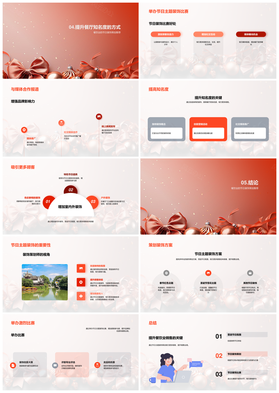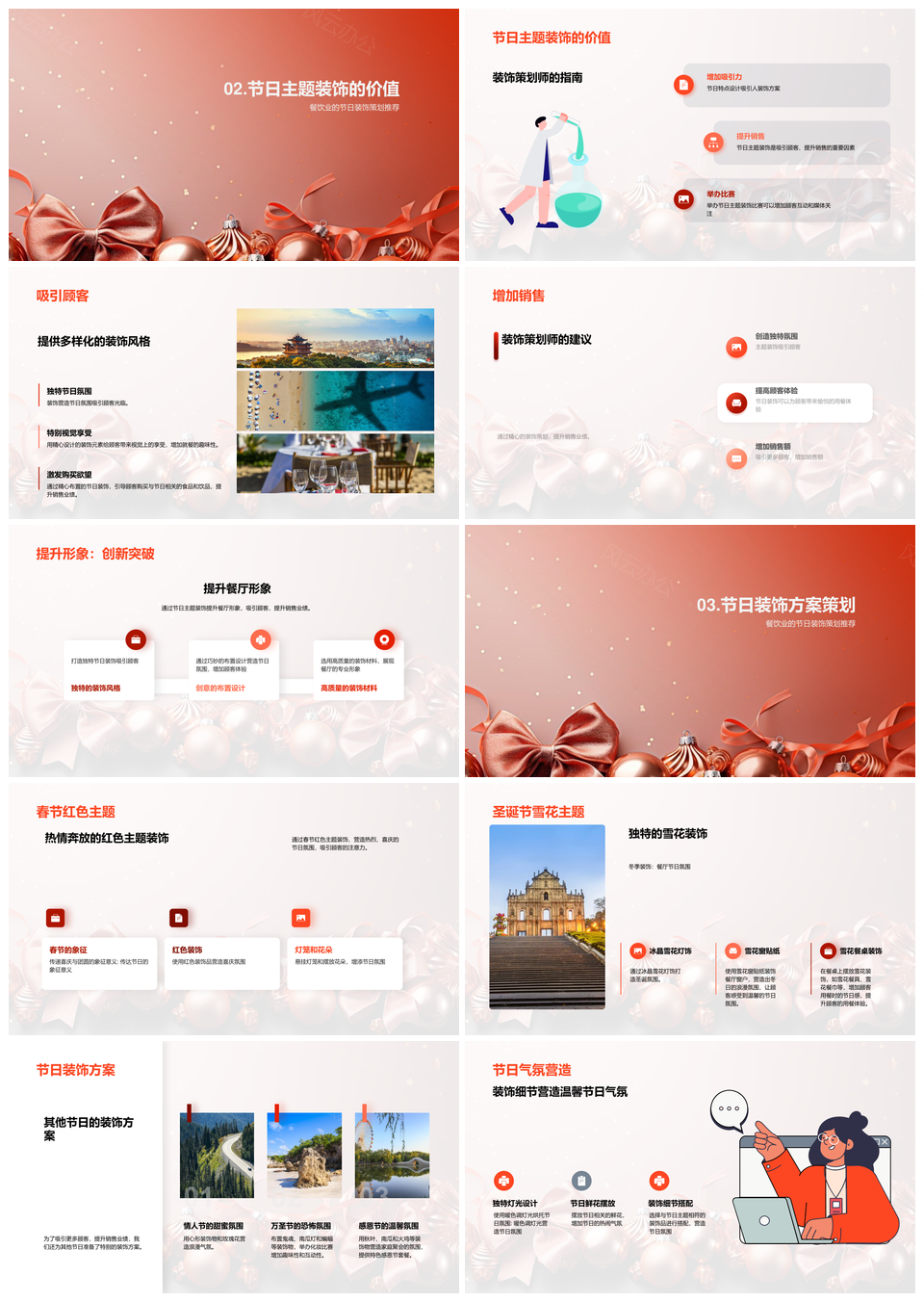 这是一张餐饮节日装饰策划师吸客增销指南PPT模板,包含餐饮、节日、装饰、策划师、吸客、增销、指南等主题内容,也可用作餐饮节日装饰策划师、节日装饰策划师吸客、装饰策划师吸客增销、策划师吸客增销指南、餐饮节日吸客增销、节日装饰增销指南、餐饮节日装饰、节日装饰策划师、装饰策划师吸客、策划师吸客增销、吸客增销指南、餐饮吸客增销、节日装饰吸客、吸客增销、增销指南等PPT场景使用。