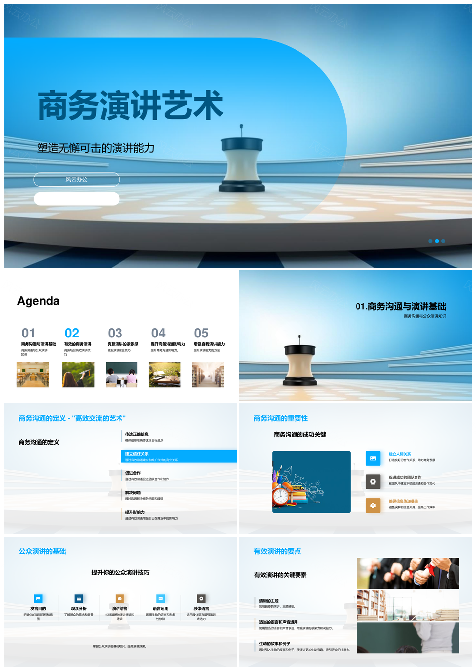 风云办公提供的商务演讲艺术高效沟通与团队协作PPT模板,下载格式为pptx,一共33页,作品中文字及图均可以修改和编辑,图片更改请在作品中右键图片并更换,文字修改请直接点击文字进行修改。