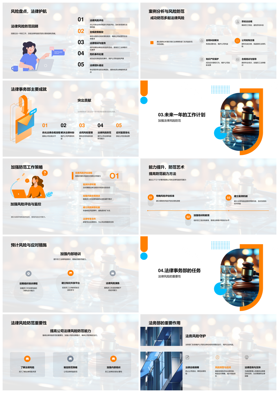 这是一张法务部高层年会强化合规风险防范法律意识PPT模板,包含法务部、高层、年会、强化、合规风险、防范、法律意识等主题内容,也可用作法务部高层强化合规风险防范、法务部高层年会强化合规、高层年会强化合规风险防范、强化合规风险防范法律意识、法务部高层合规风险防范、年会强化合规风险防范、合规风险防范法律意识、法务部强化合规风险防范、高层强化合规风险防范、法务部高层年会、强化合规法律意识、合规风险防范、风险防范法律意识、法务部高层、高层年会等PPT场景使用。 风云办公提供的法务部高层年会强化合规风险防范法律意识PPT模板,下载格式为pptx,一共23页,作品中文字及图均可以修改和编辑,图片更改请在作品中右键图片并更换,文字修改请直接点击文字进行修改。