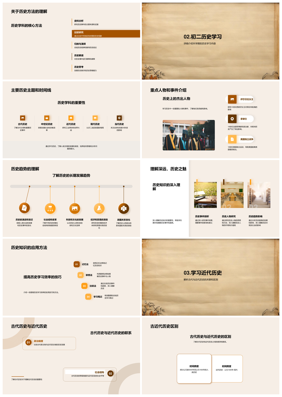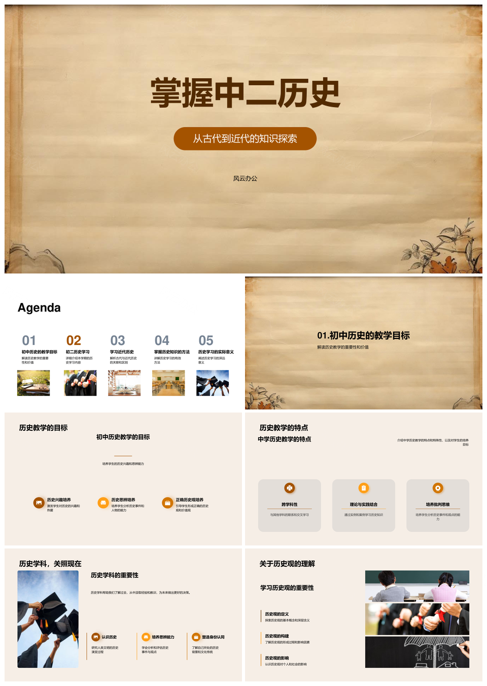 风云办公提供的初中历史教学目标与古代近代学法应用PPT模板,下载格式为pptx,一共33页,作品中文字及图均可以修改和编辑,图片更改请在作品中右键图片并更换,文字修改请直接点击文字进行修改。