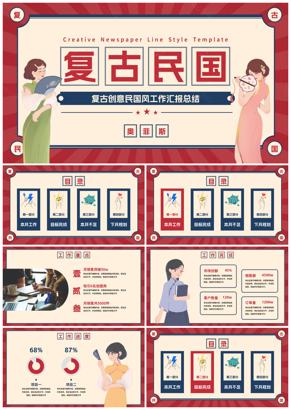 这是一张复古民国创意卡通插画工作汇报PPT模板,包含复古、民国、创意、卡通、插画、工作、汇报等主题内容,也可用作复古民国创意卡通插画、民国创意卡通插画工作、创意卡通插画工作汇报、复古民国创意卡通、民国创意卡通插画、创意卡通插画工作、卡通插画工作汇报、复古民国创意、民国创意卡通、创意卡通插画、卡通插画工作、插画工作汇报、复古民国、民国创意、创意卡通、卡通插画、插画工作、工作汇报等PPT场景使用。