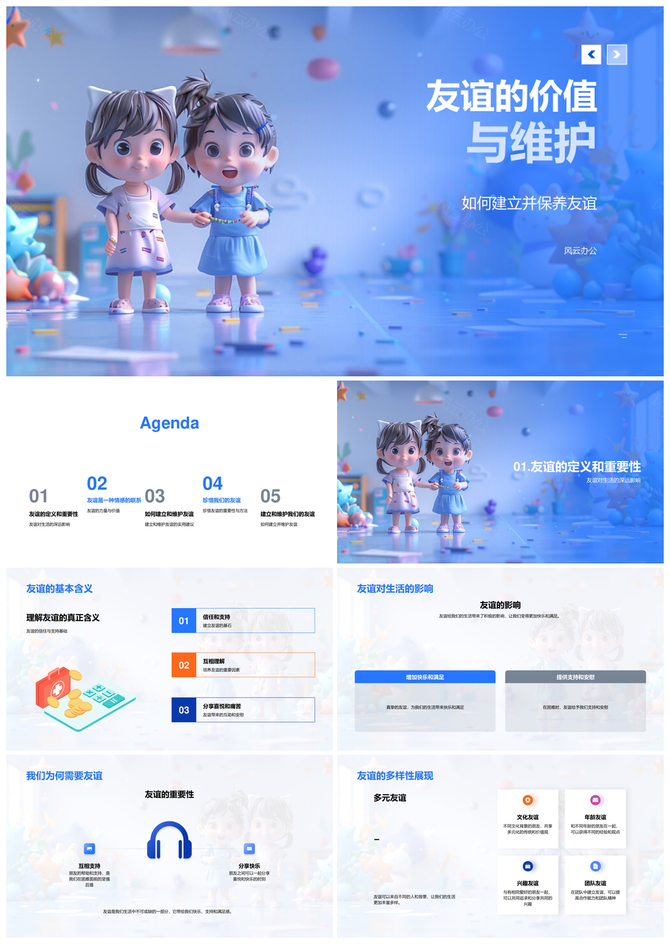2025友谊建立维护以诚共享兴趣化解冲突PPT模板