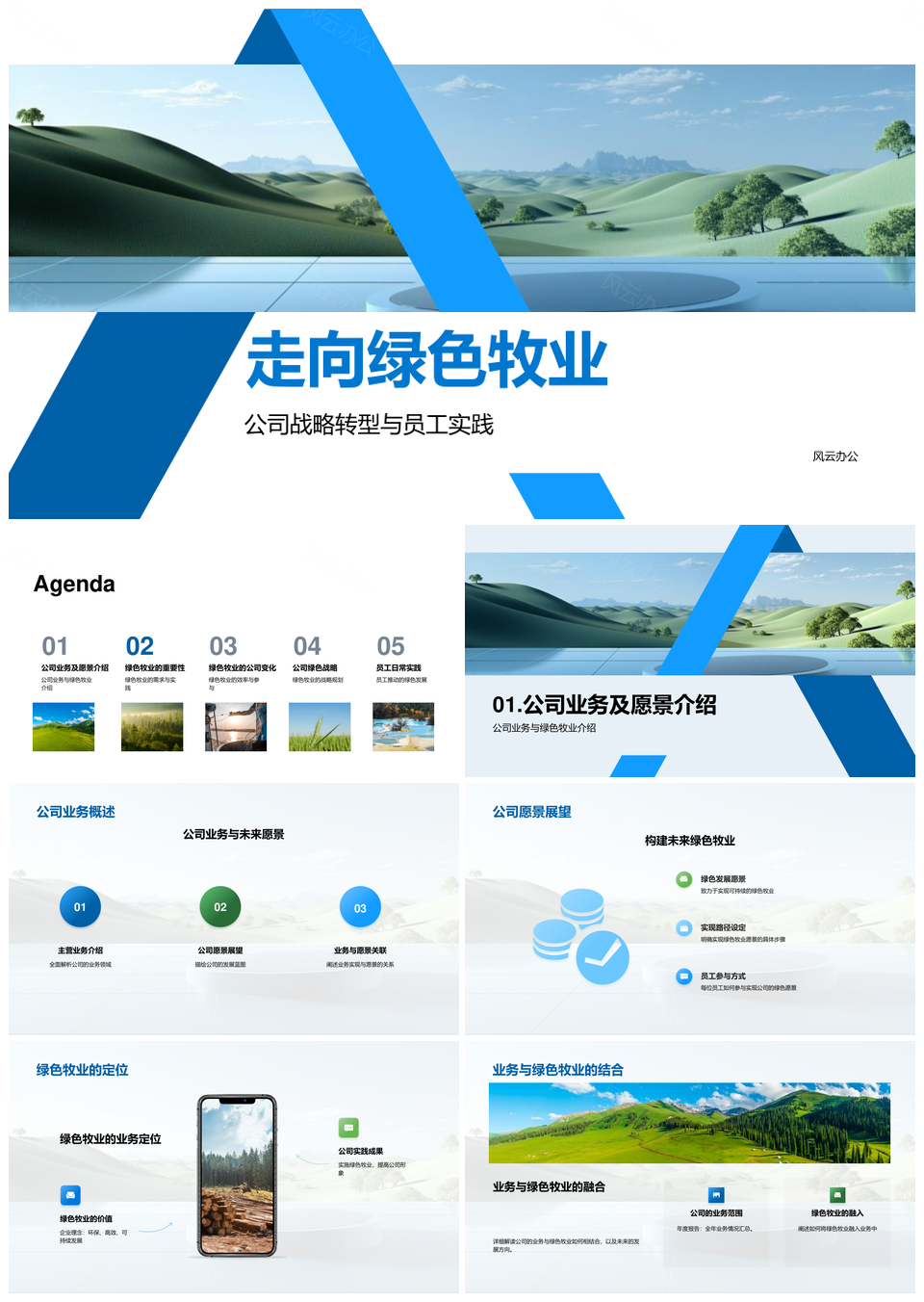 风云办公提供的绿色牧业战略转型促产护形象应市规PPT模板,下载格式为pptx,一共28页,作品中文字及图均可以修改和编辑,图片更改请在作品中右键图片并更换,文字修改请直接点击文字进行修改。