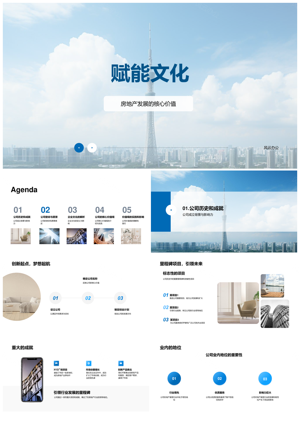 风云办公提供的赋能文化筑基地产核心价值发展PPT模板,下载格式为pptx,一共33页,作品中文字及图均可以修改和编辑,图片更改请在作品中右键图片并更换,文字修改请直接点击文字进行修改。