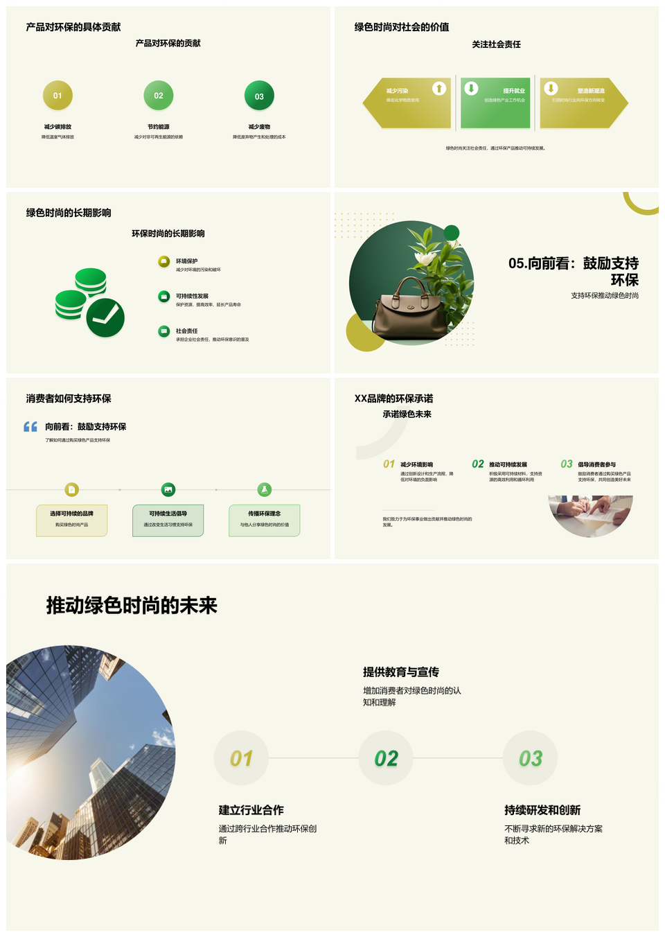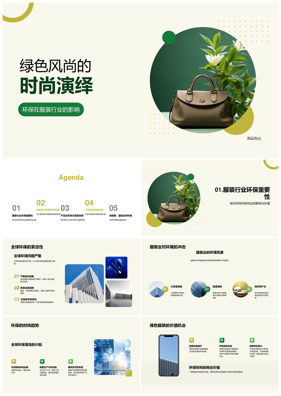 风云办公提供的绿色风尚环保服装发布会可持续设计潮PPT模板,下载格式为pptx,一共25页,作品中文字及图均可以修改和编辑,图片更改请在作品中右键图片并更换,文字修改请直接点击文字进行修改。