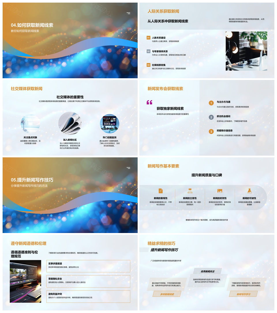 风云办公提供的2025新闻采编新秀全流程技巧训练PPT模板,下载格式为pptx,一共26页,作品中文字及图均可以修改和编辑,图片更改请在作品中右键图片并更换,文字修改请直接点击文字进行修改。