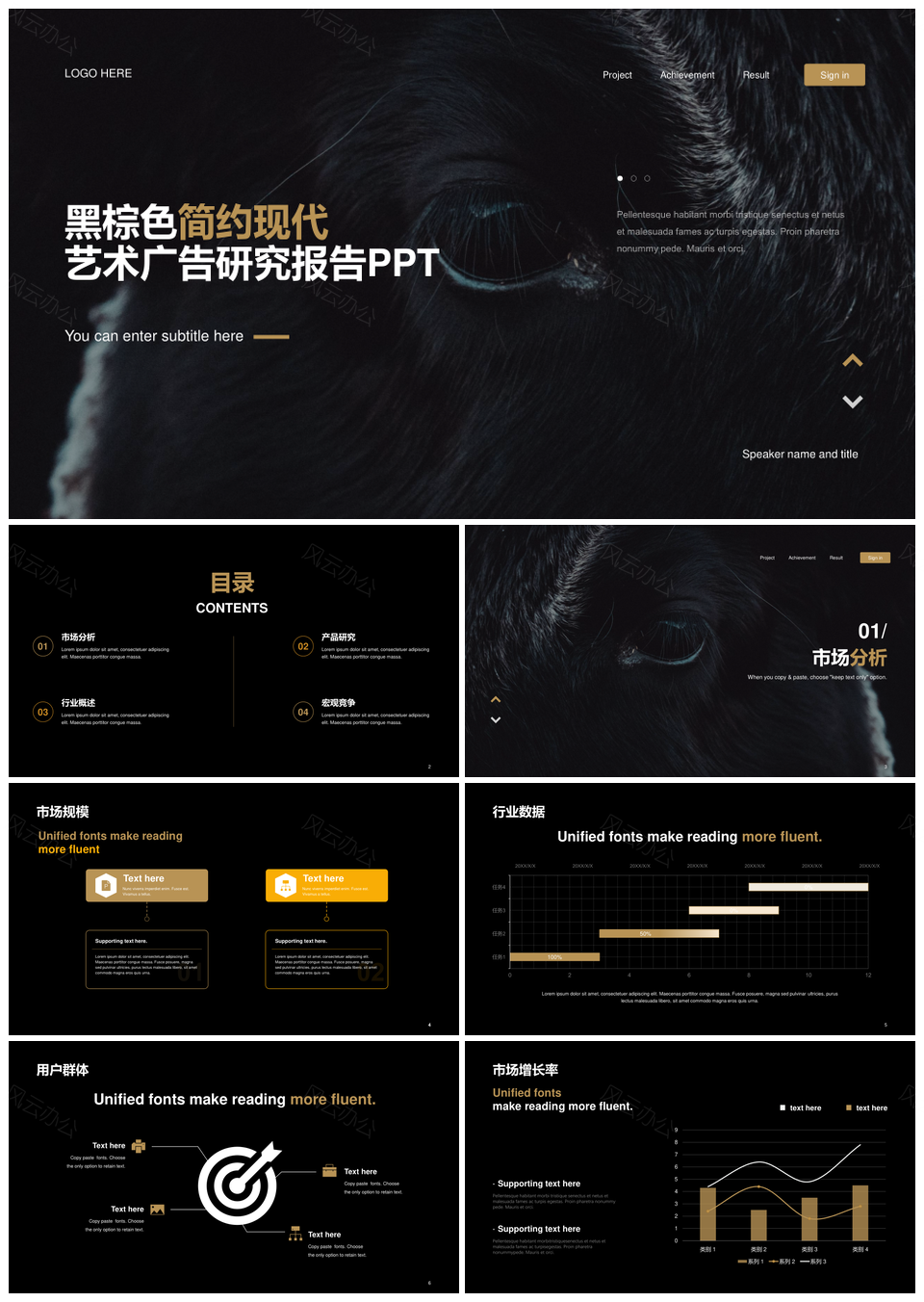 黑色棕色现代艺术广告毕业答辩高端时尚PPT模板推荐