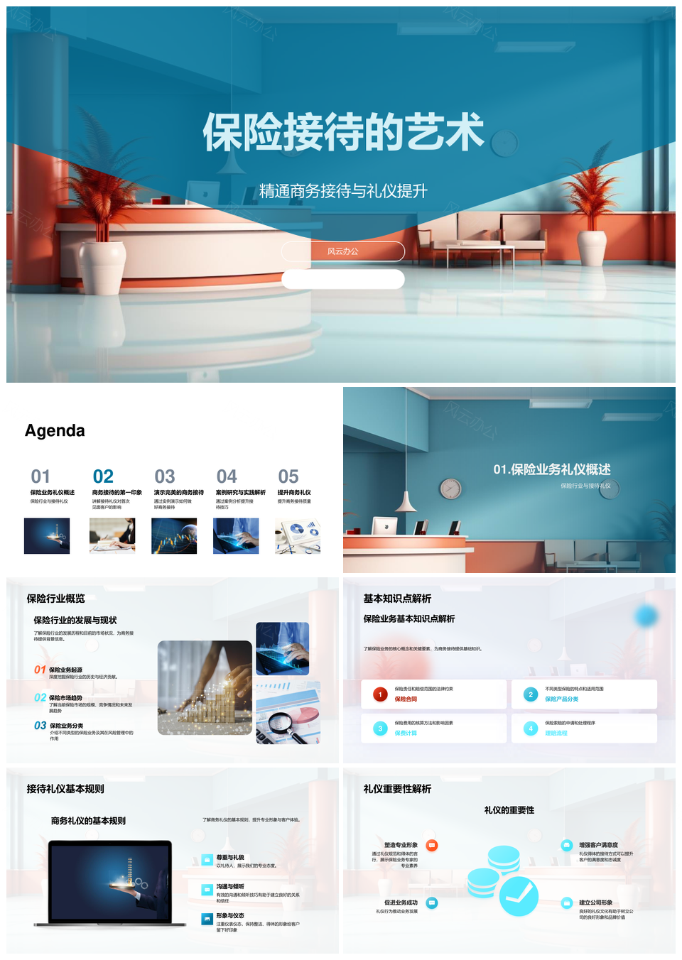 风云办公提供的保险商务接待礼仪提升专家指南PPT模板,下载格式为pptx,一共25页,作品中文字及图均可以修改和编辑,图片更改请在作品中右键图片并更换,文字修改请直接点击文字进行修改。