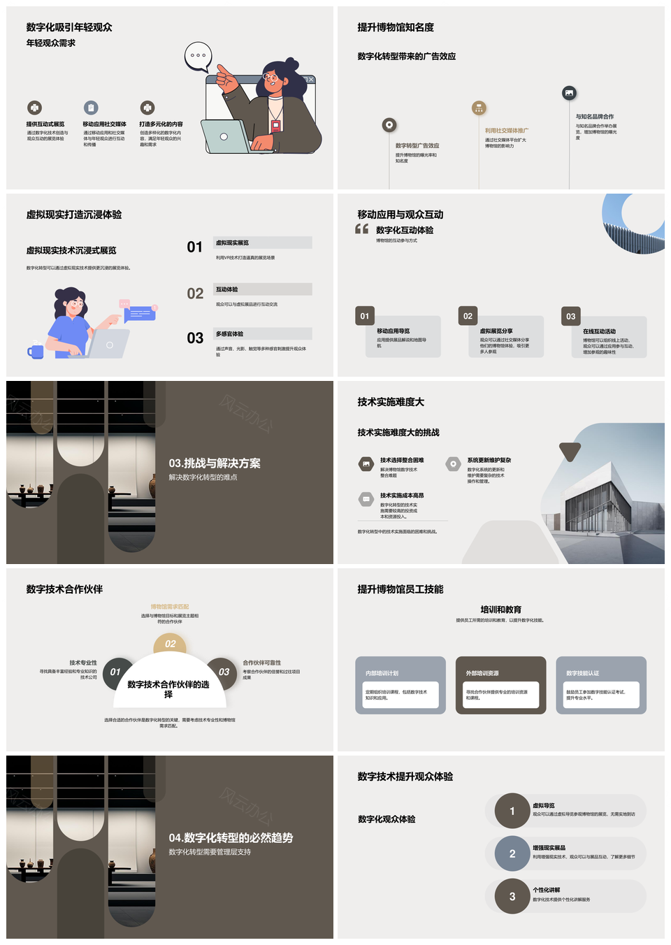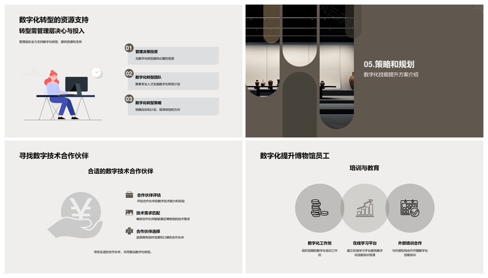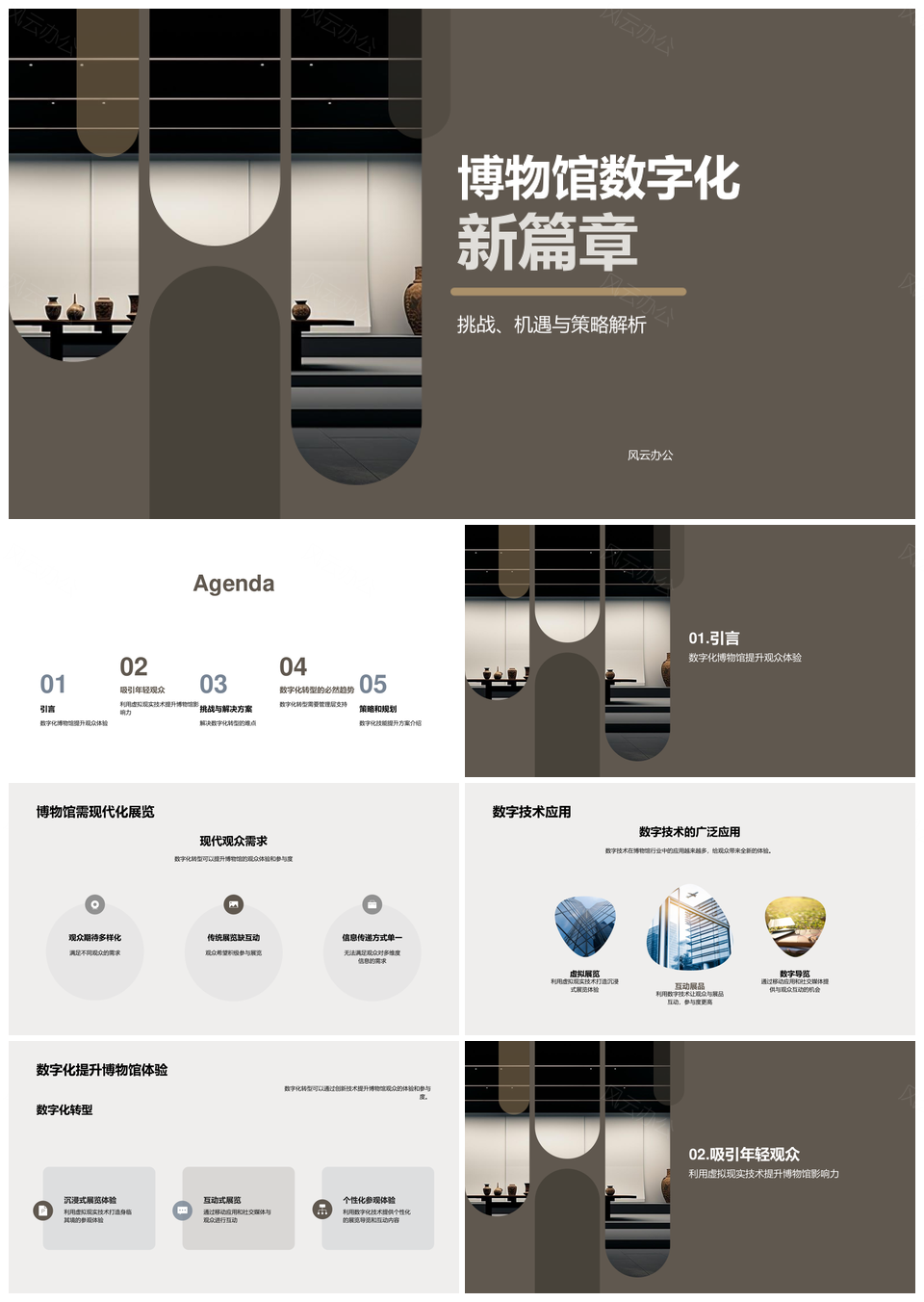 风云办公提供的未来博物馆数字化转型策展竞赛路演PPT模板,下载格式为pptx,一共22页,作品中文字及图均可以修改和编辑,图片更改请在作品中右键图片并更换,文字修改请直接点击文字进行修改。