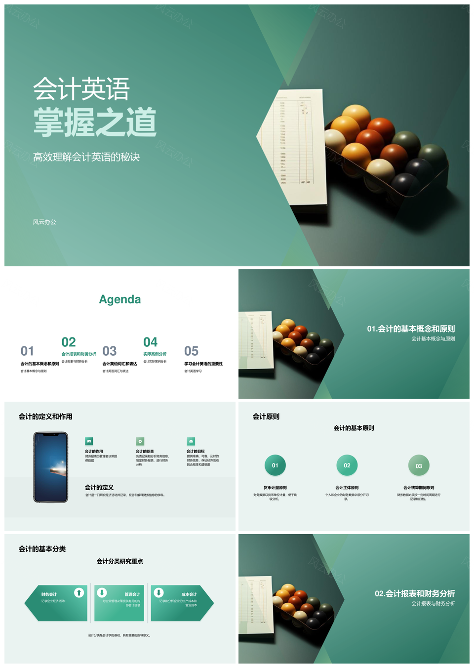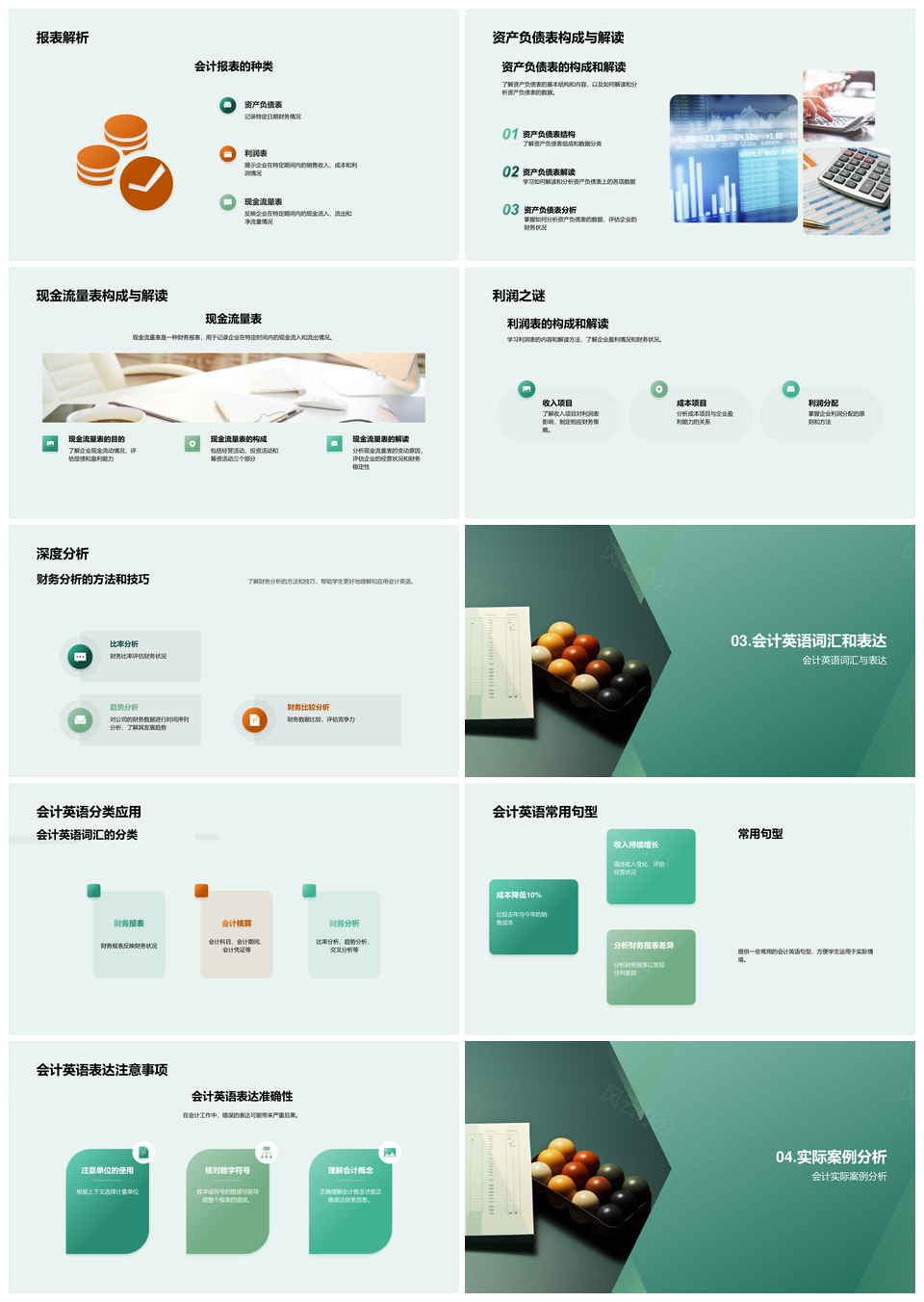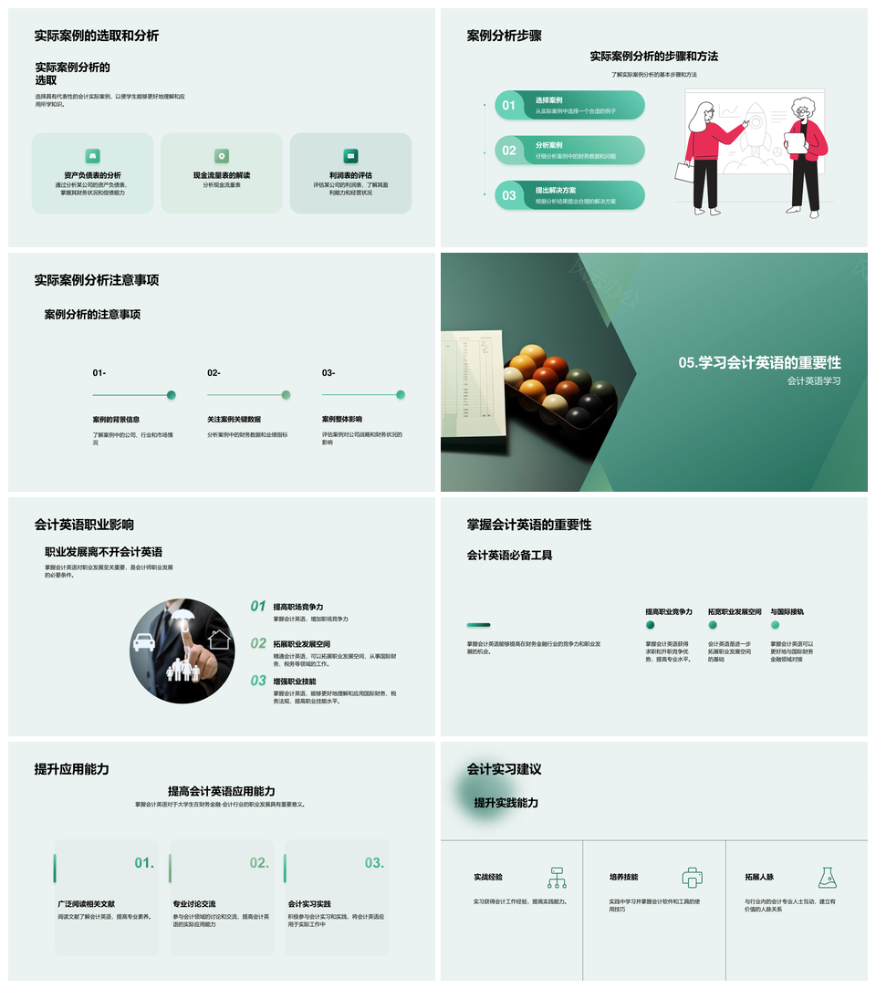 大学生英语教师财务会计课程报表账本原则PPT模板推荐