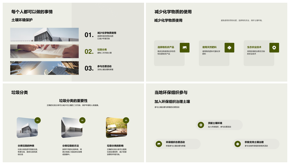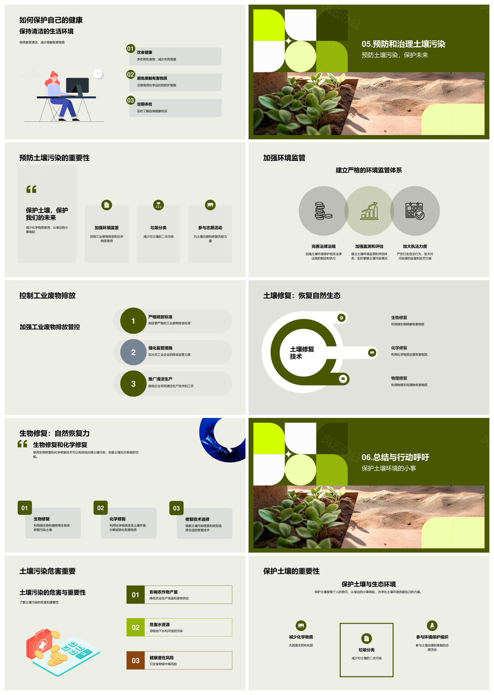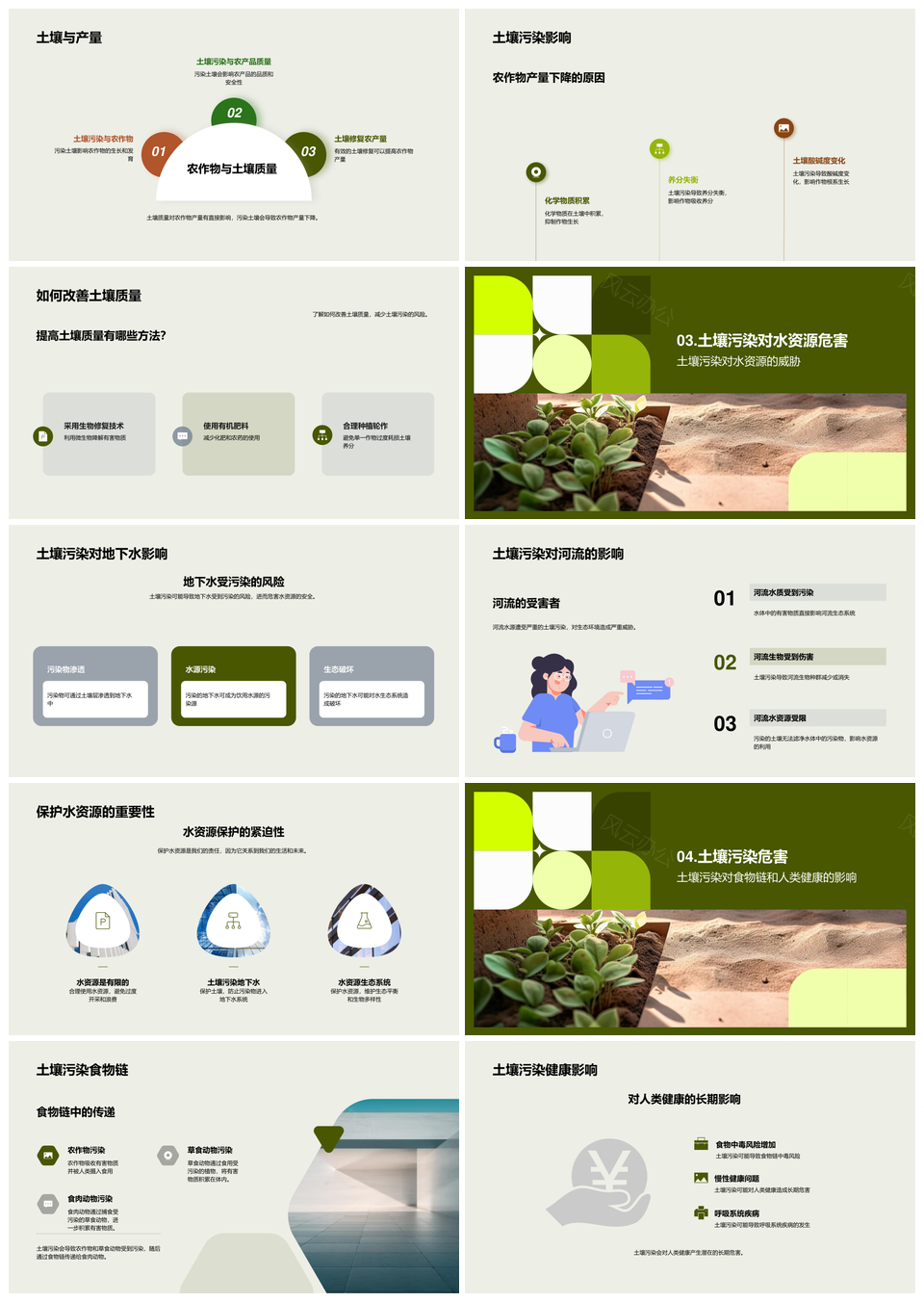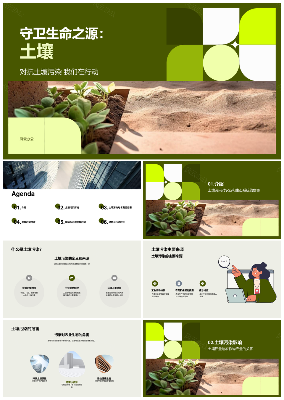 这是一张防治土壤污染护农业生态健康PPT模板,包含防治、土壤污染、农业生态、健康等主题内容,也可用作防治土壤污染、土壤污染农业生态、污染农业生态健康、防治污染农业生态、农业生态健康、土壤污染、农业生态、生态健康、防治污染、污染农业、防治土壤、土壤农业、农业健康、污染生态、防治农业生态等PPT场景使用。 风云办公提供的防治土壤污染护农业生态健康PPT模板,下载格式为pptx,一共32页,作品中文字及图均可以修改和编辑,图片更改请在作品中右键图片并更换,文字修改请直接点击文字进行修改。
