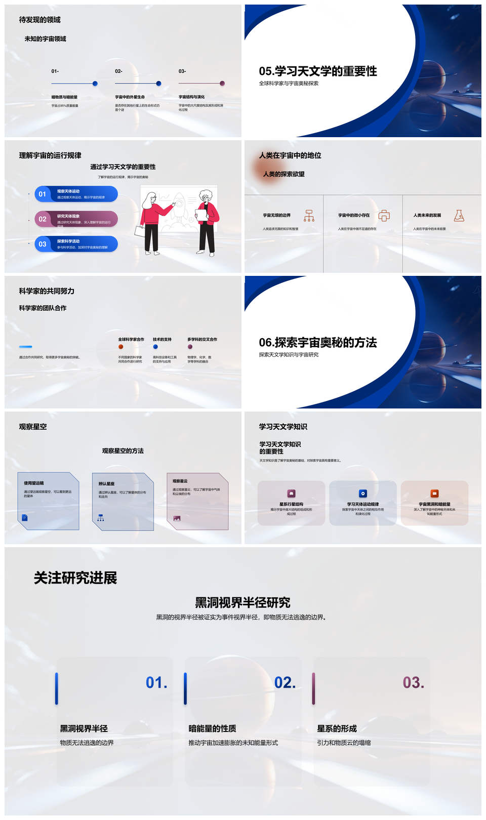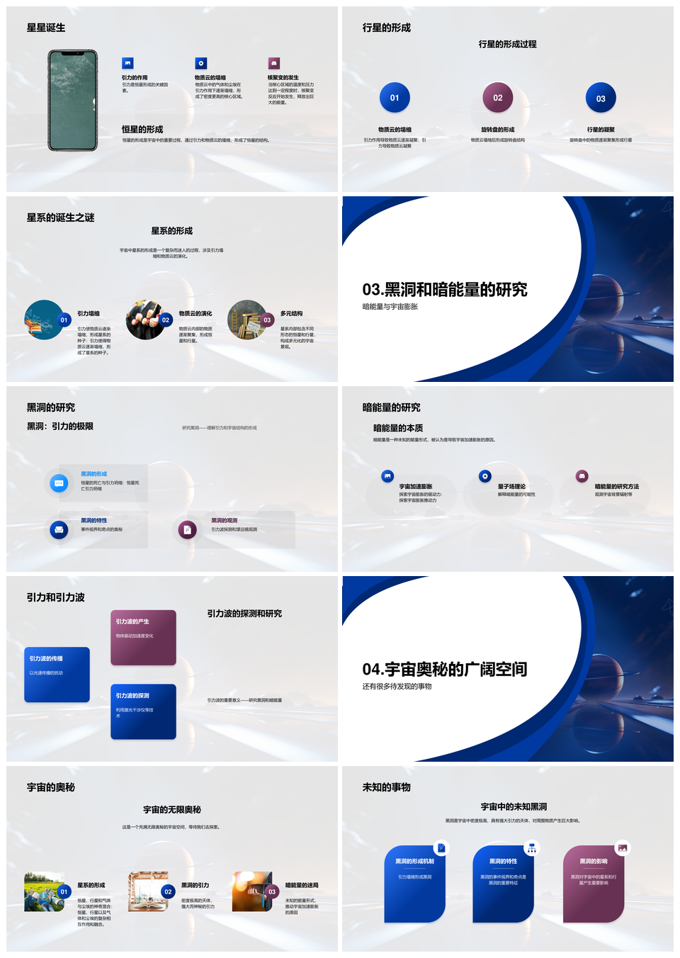 宇宙起源演变黑洞星系物质分布科学探索PPT模板