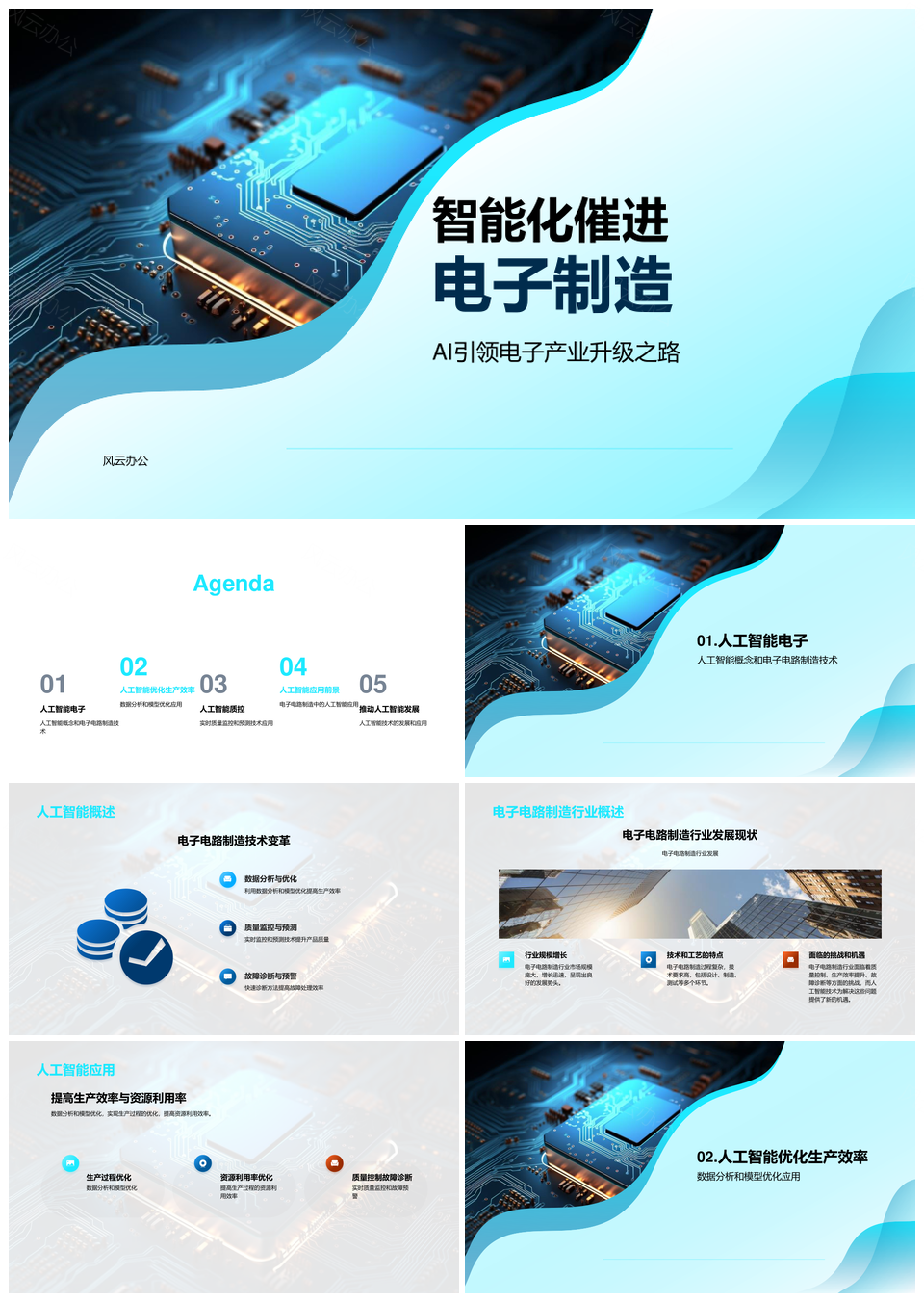 风云办公提供的智能引领电子智造技术革新PPT模板,下载格式为pptx,一共23页,作品中文字及图均可以修改和编辑,图片更改请在作品中右键图片并更换,文字修改请直接点击文字进行修改。