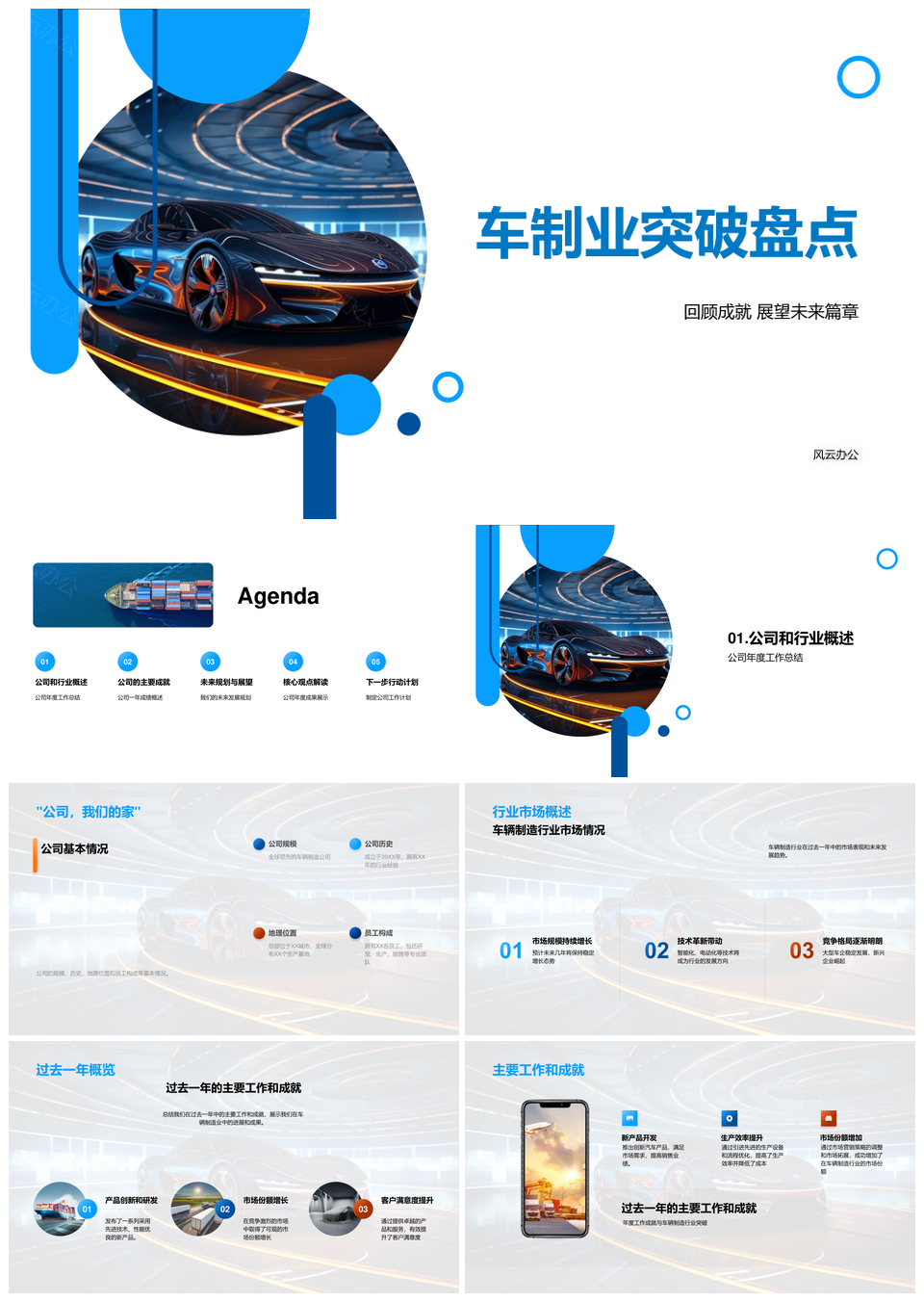 风云办公提供的车制业年度业绩成就突破与战略规划PPT模板,下载格式为pptx,一共33页,作品中文字及图均可以修改和编辑,图片更改请在作品中右键图片并更换,文字修改请直接点击文字进行修改。