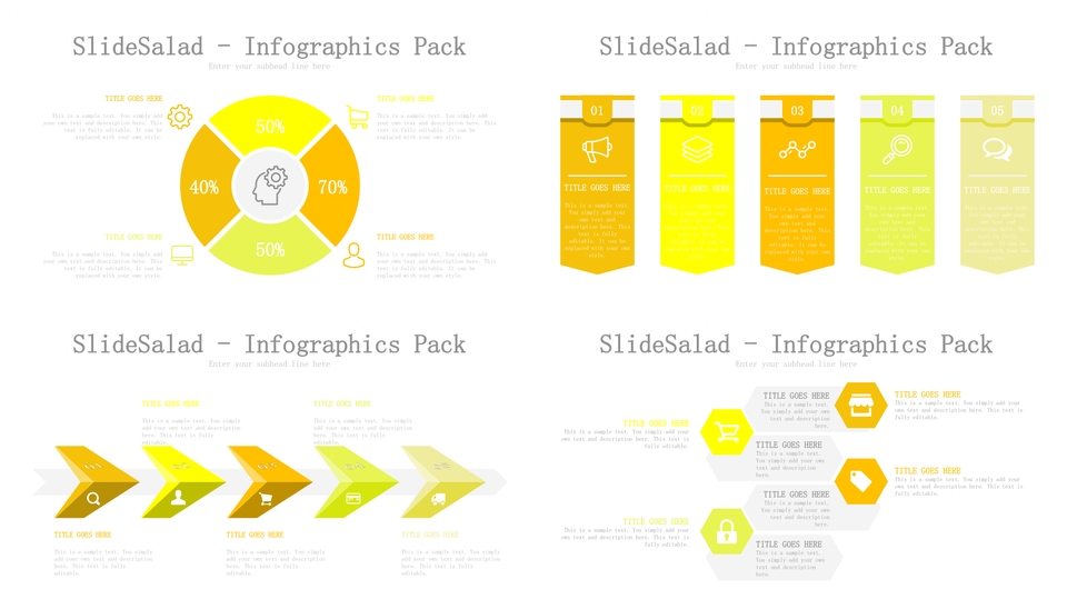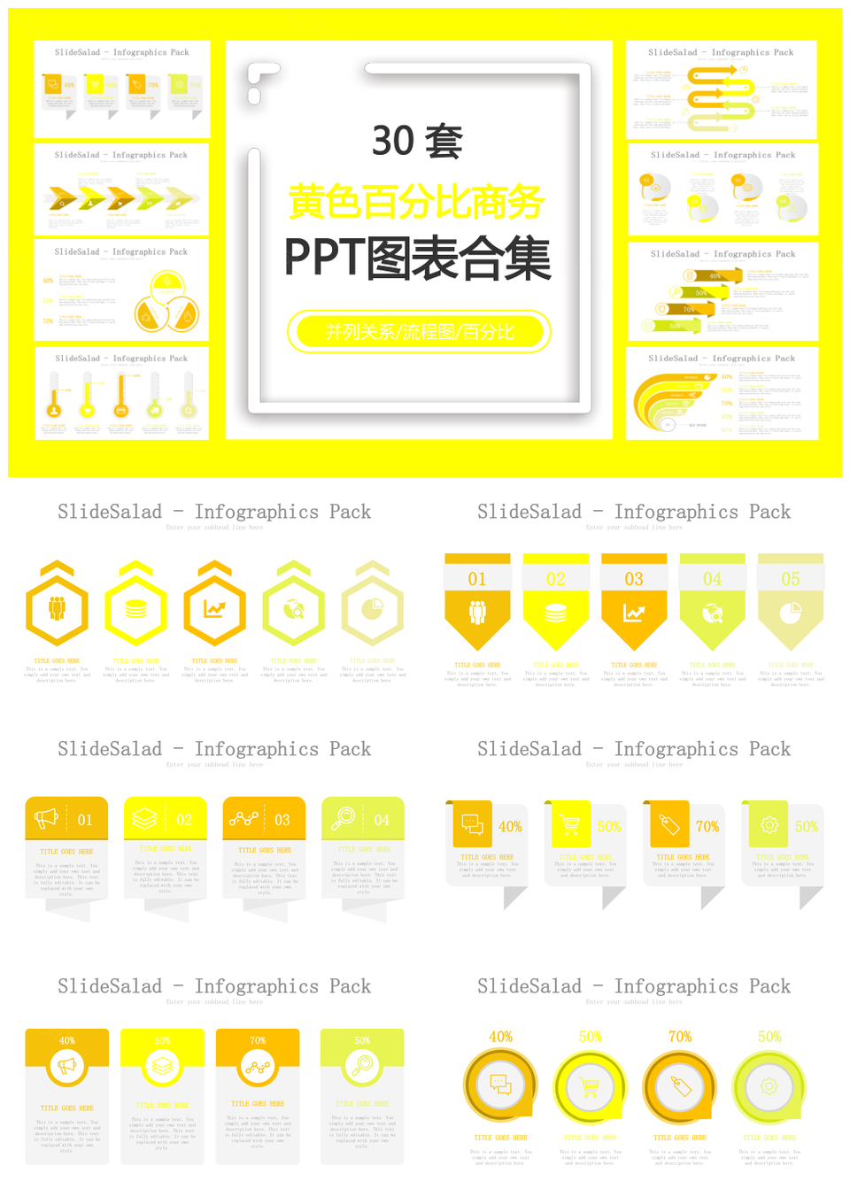 黄色百分比商务并列关系流程图百分比PPT图表合集推荐