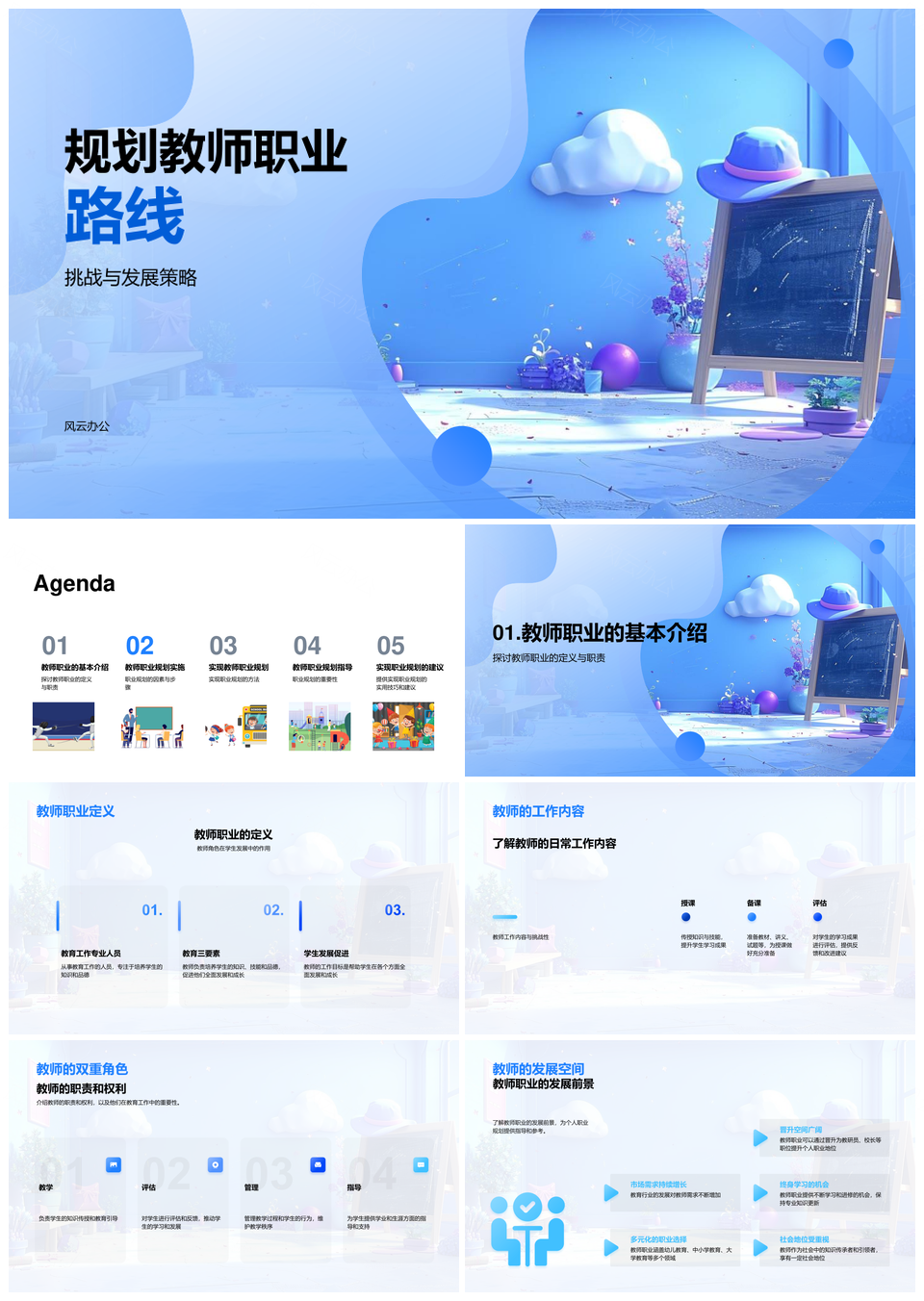 教师职业规划挑战发展策略角色目标行业趋势PPT模板推荐