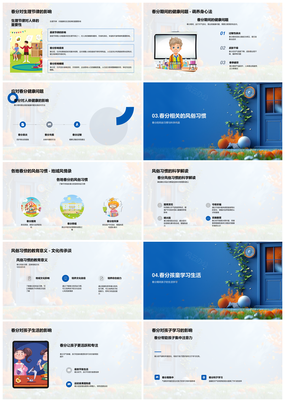这是一张2025春分儿童健康天文风俗科学教育PPT模板,包含2025、春分、儿童、健康、天文、风俗、科学、教育等主题内容,也可用作2025春分儿童健康、春分儿童健康天文、儿童健康天文风俗、健康天文风俗科学、天文风俗科学教育、2025春分儿童、春分儿童健康、儿童健康天文、健康天文风俗、天文风俗科学、风俗科学教育、2025春分、春分儿童、儿童健康、健康天文等PPT场景使用。 风云办公提供的2025春分儿童健康天文风俗科学教育PPT模板,下载格式为pptx,一共23页,作品中文字及图均可以修改和编辑,图片更改请在作品中右键图片并更换,文字修改请直接点击文字进行修改。