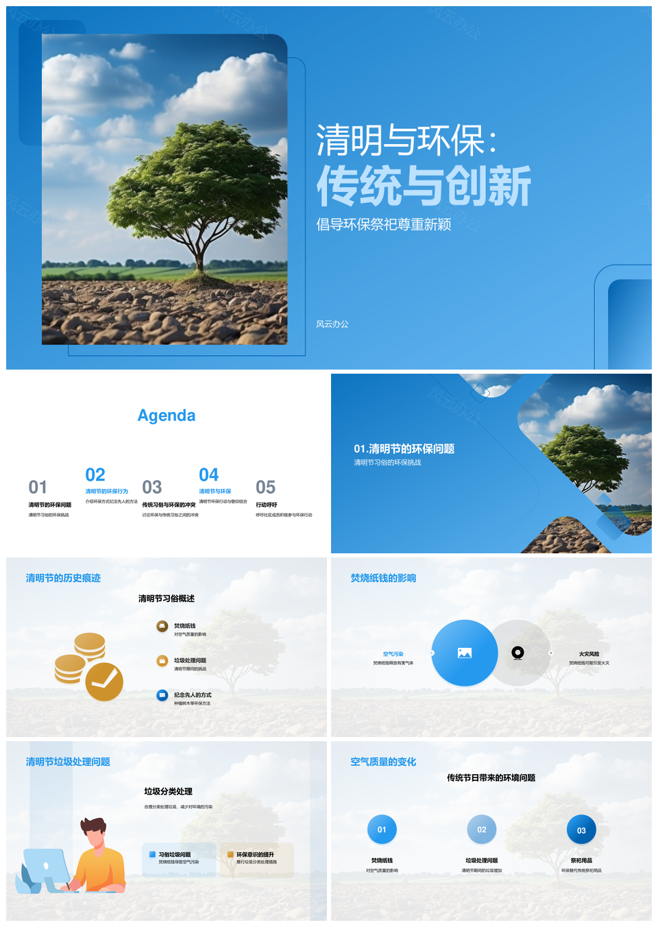 风云办公提供的清明环保祭祀减焚烧植树护墓净空气PPT模板,下载格式为pptx,一共33页,作品中文字及图均可以修改和编辑,图片更改请在作品中右键图片并更换,文字修改请直接点击文字进行修改。