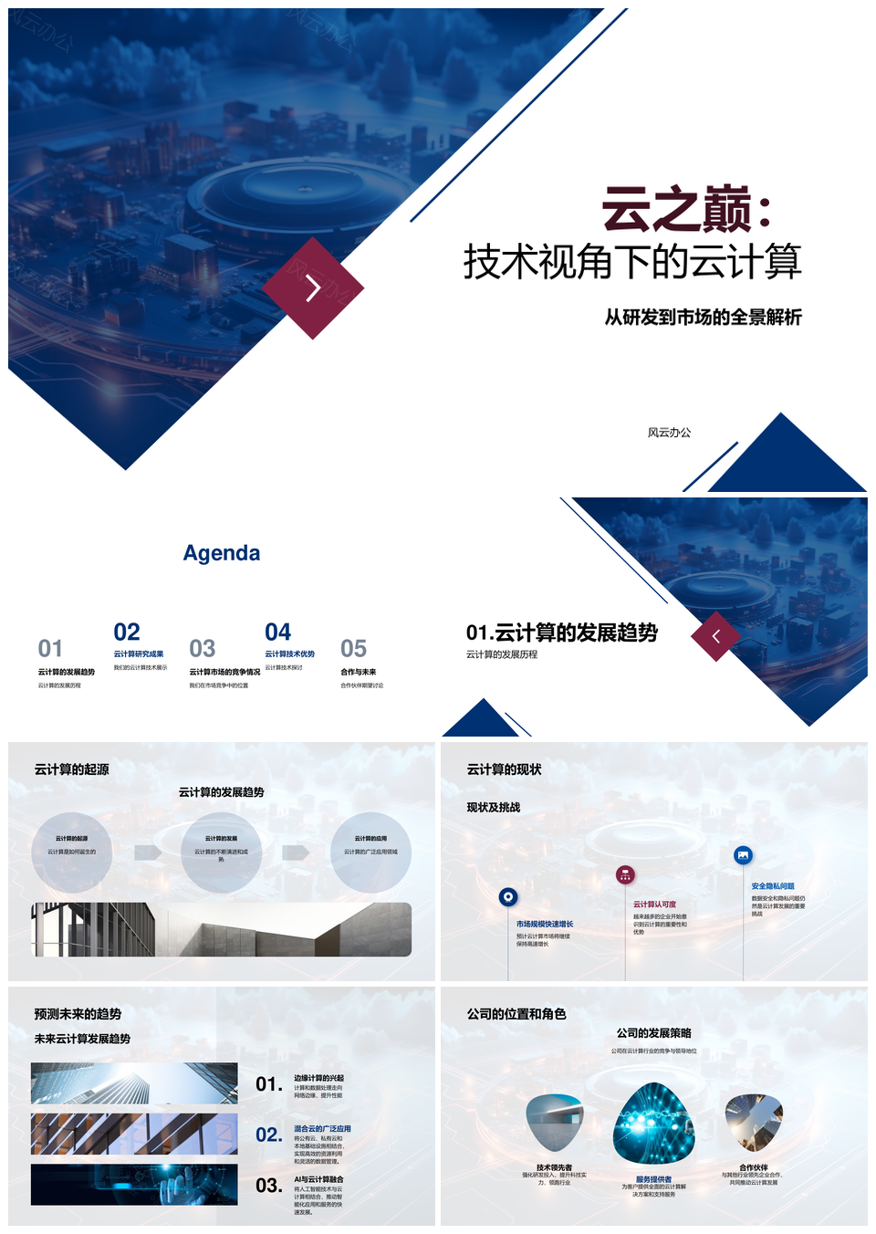 云计算技术竞争与数据安全发展趋势PPT模板推荐