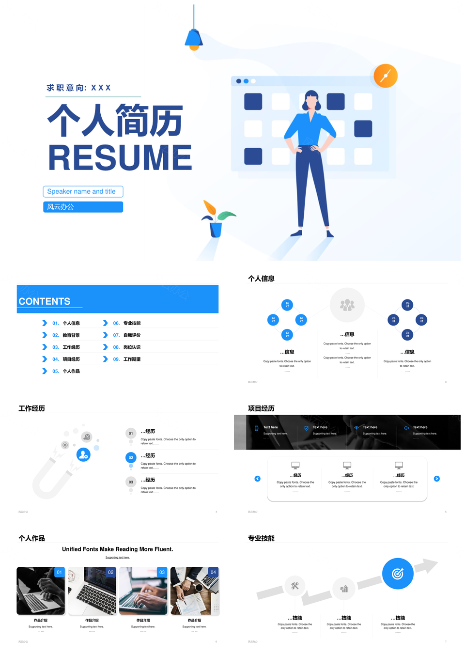 这是一张人物简历信息扁平竞聘PPT模板,包含人物、简历、信息、扁平、竞聘等主题内容,也可用作人物简历信息扁平、简历信息扁平竞聘、人物简历信息、简历信息扁平、信息扁平竞聘、人物简历扁平竞聘、人物信息扁平竞聘、简历信息竞聘、人物简历信息竞聘、人物信息竞聘、人物简历、简历信息、信息扁平、扁平竞聘、人物信息等PPT场景使用。 风云办公提供的人物简历信息扁平竞聘PPT模板,下载格式为pptx,一共11页,作品中文字及图均可以修改和编辑,图片更改请在作品中右键图片并更换,文字修改请直接点击文字进行修改。