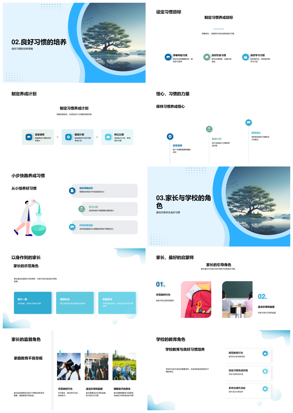 这是一张家校共育培良习塑未来PPT模板,包含家校、共育、培、良习、塑、未来等主题内容,也可用作家校共育良习未来、家校共育良习、家校共育未来、共育良习未来、家校良习未来、家校共育、共育良习、良习未来、家校未来、共育未来、家校良习、共育家校良习、共育未来家校、家校良习未来共育、家校共育良习未来家校等PPT场景使用。 风云办公提供的家校共育培良习塑未来PPT模板,下载格式为pptx,一共28页,作品中文字及图均可以修改和编辑,图片更改请在作品中右键图片并更换,文字修改请直接点击文字进行修改。